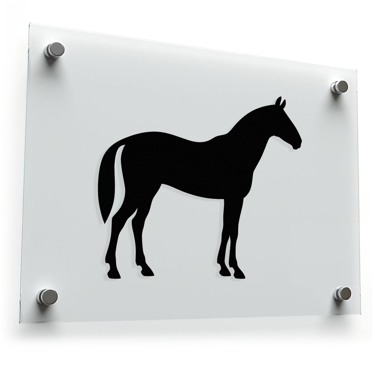 Enhance your style with the Majestic Horse decal, an elegant stallion silhouette perfect for car, laptop, wall, or any smooth surface. This high-quality vinyl sticker showcases a beautifully detailed horse, adding a touch of grace and power. The classic black color is versatile and timeless, making it a stylish accent for any item. Crafted from durable materials, this sticker is designed to last. It’s also easy to apply and remove, allowing you to effortlessly customize your belongings. Available in Multiple Size Options. The image displays the silhouette of a standing horse in black against a white background. The horse is facing left with its tail slightly extended.
