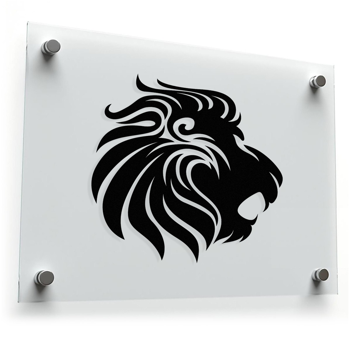 Command attention with this majestic lion head decal. This powerful feline sticker features a stylized lion’s head, radiating strength and regal presence. The sleek black vinyl decal is perfect for personalizing your car, laptop, wall, or any smooth surface. Made from durable, weatherproof materials, this sticker is designed to last, resisting fading and peeling. Available in Multiple Size Options. The image shows a black silhouette of a lion’s head facing right on a white background. The design is stylized and bold, with the lion’s mane depicted in flowing lines. The dominant color is black.