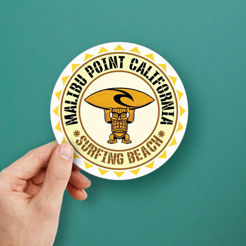 Malibu Point California Sticker 🏄 Celebrate Malibu Surf Culture: Show your love for Malibu Point California with this vibrant Tiki-inspired surfing beach sticker. Perfect for surf lovers and beach enthusiasts alike! 🏄