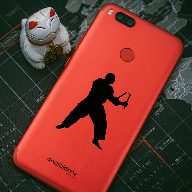 Martial Arts Silhouette Sticker 🥋 Dynamic Martial Arts Design: Showcase your passion for martial arts with this striking silhouette of a karate fighter wielding nunchaku. Perfect for adding a bold and action-packed touch to any surface! 🥋