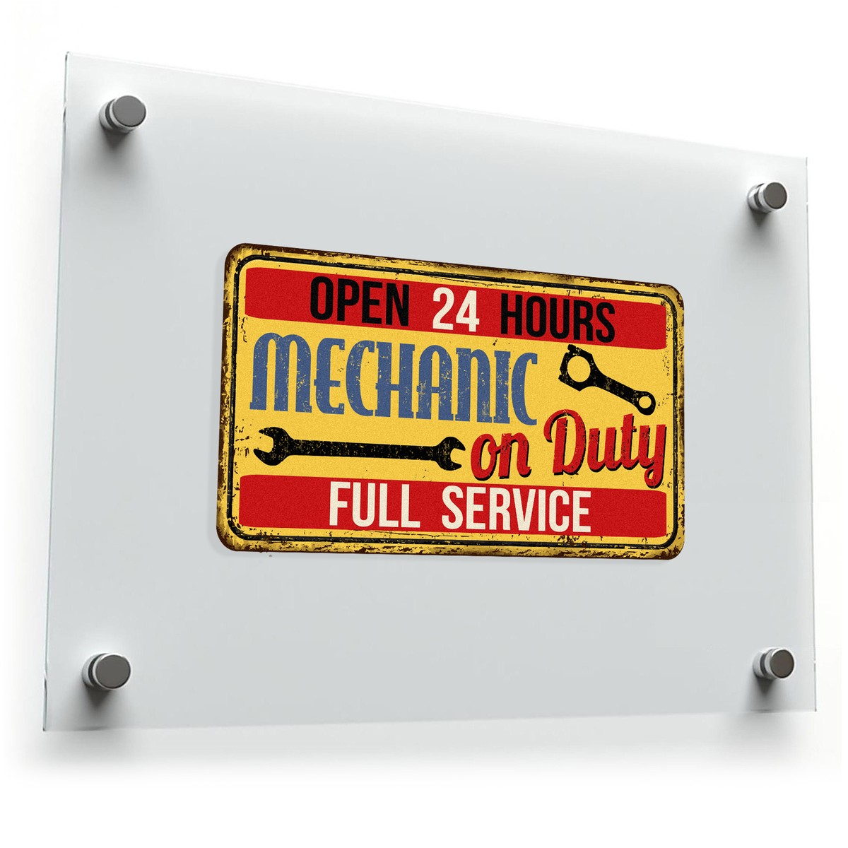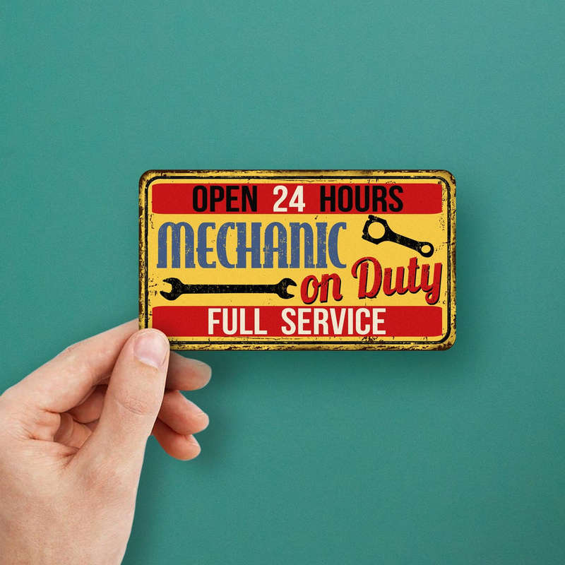 Bring the charm of a classic garage to your space with the Mechanic On Duty Sticker, a vintage-inspired vinyl decal with a rustic yellow background and bold text. Featuring “Open 24 Hours” and “Full Service,” this sticker is perfect for garages, toolboxes, and automotive-themed spaces. Crafted from durable, waterproof vinyl, it resists fading and wear, ensuring a long-lasting design that works both indoors and outdoors. Whether you’re gifting it to a car enthusiast or adding it to your own workshop, this sticker combines functionality with nostalgic style. Available in multiple size options, it’s the ultimate decor for automotive fans.