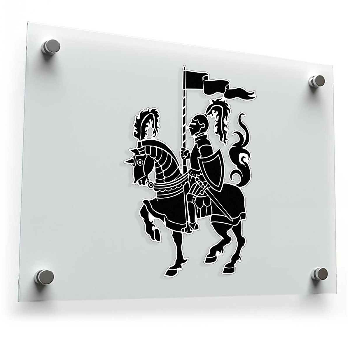 Medieval Knight on Horseback Vinyl Decal ⚔️ Bold Medieval Knight Design: This striking knight on horseback decal, featuring a knight holding a flag, adds a touch of historical elegance and power to your car, laptop, or home décor. ⚔️