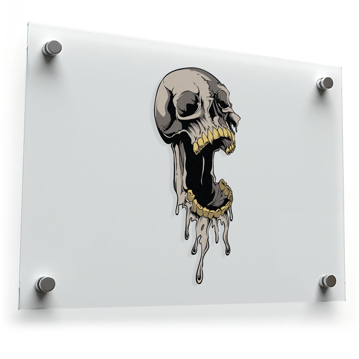 Add a haunting aesthetic to your space or vehicle with this melting skull vinyl decal. Featuring a chillingly detailed skull with a dripping, melting effect, this sticker creates an eerie gothic vibe. Perfect for cars, motorcycles, walls, or laptops, it’s crafted from durable vinyl to withstand weather elements and maintain its striking appearance. Offered in 20 size variations, it’s versatile enough for small personal items or large statement pieces. The peel-and-stick design allows for quick application and residue-free removal, making it the ideal choice for fans of gothic horror and bold art.