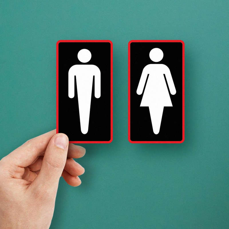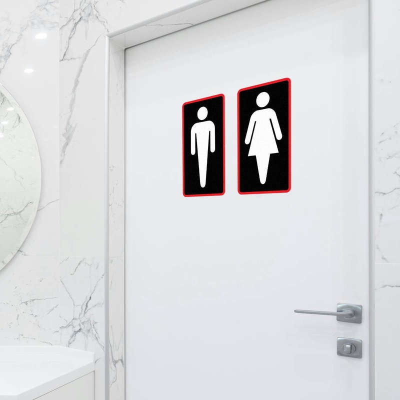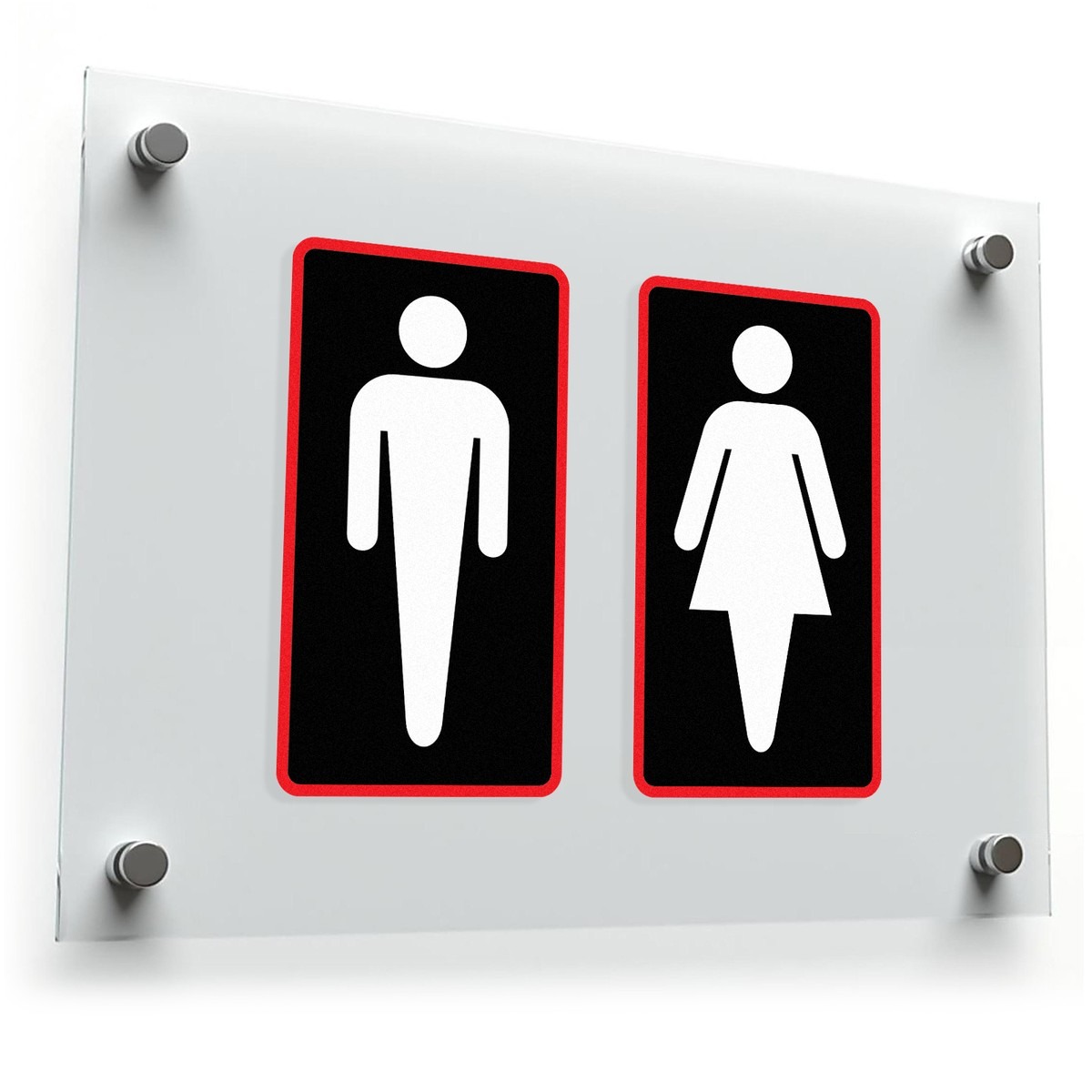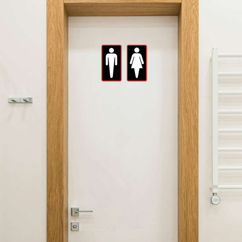 Men’s and Women’s Restroom Signs Decal Set 🚻 Clear and Bold Design: Ensure clear communication with this set of men’s and women’s restroom signs, featuring bold black, white, and red colors for high visibility and easy identification. 🚻