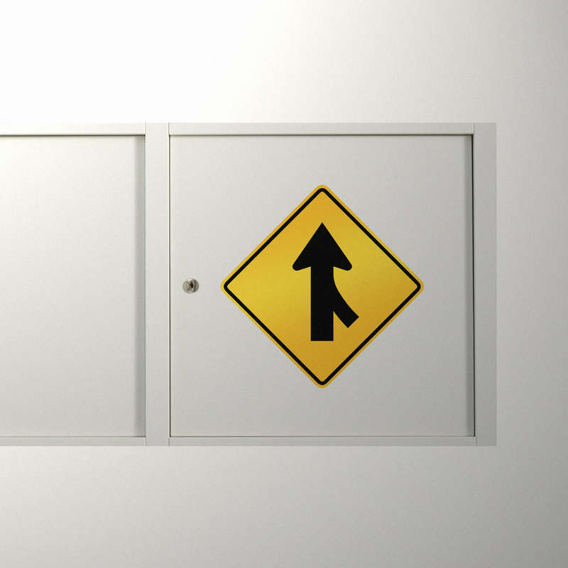 Ensure safe and efficient traffic flow with this “Merge Ahead” vinyl sticker. Featuring a bold black merging arrow on a bright yellow diamond background, this decal effectively communicates lane merging areas and promotes safe driving practices. Crafted from durable, water-resistant vinyl, it maintains vibrant colors and clear messaging in outdoor conditions. Ideal for highways, construction zones, and other merging lanes, this sticker enhances safety and compliance with professional-grade signage. Easy to apply and remove, it adheres securely without leaving residue. Available in multiple size options to suit your specific needs, this sticker is a reliable solution for traffic management.