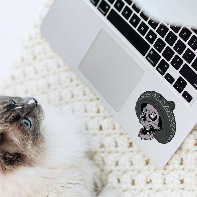 Showcase a bold, cultural flair with this Mexican skull vinyl sticker featuring a skeleton donning a detailed sombrero. Perfect for lovers of edgy art and Day of the Dead aesthetics, this decal stands out on cars, laptops, helmets, or any smooth surface. Made from durable, weather-resistant vinyl, it’s designed to withstand the elements without fading or peeling. With easy application and clean removal, it ensures a hassle-free experience while letting you add personality to your belongings. Available in multiple size options, this decal is the perfect choice for fans of skeleton art and Mexican-inspired designs.