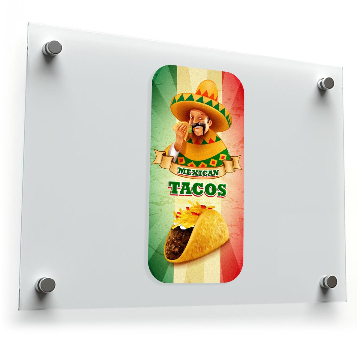 Celebrate the joy of tacos with this Mexican Tacos Vinyl Sticker, a vibrant decal featuring a cheerful sombrero-wearing character and a mouthwatering taco illustration. The bold green, white, and red design pays homage to Mexican culture, making it perfect for food lovers and those who enjoy festive decor. Ideal for use on cars, laptops, or kitchen spaces, this high-quality vinyl sticker is weatherproof and resistant to fading, ensuring long-lasting vibrancy indoors or outdoors. Easy to apply and remove without residue, this sticker adds a playful and colorful touch to your belongings. Available in multiple sizes to fit your style and needs.