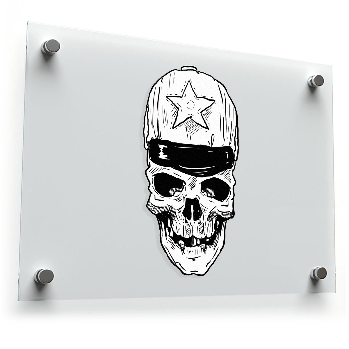 Military Skull Sticker ⭐ Striking Design: Make a bold statement with this detailed military skull sticker featuring a star-adorned hat and edgy monochrome art. Perfect for standing out! ⭐