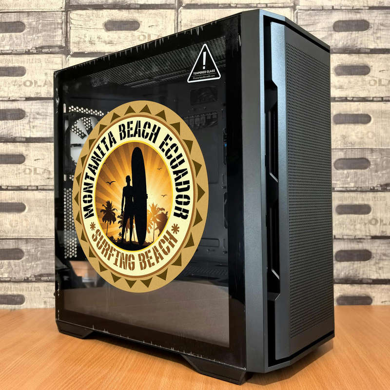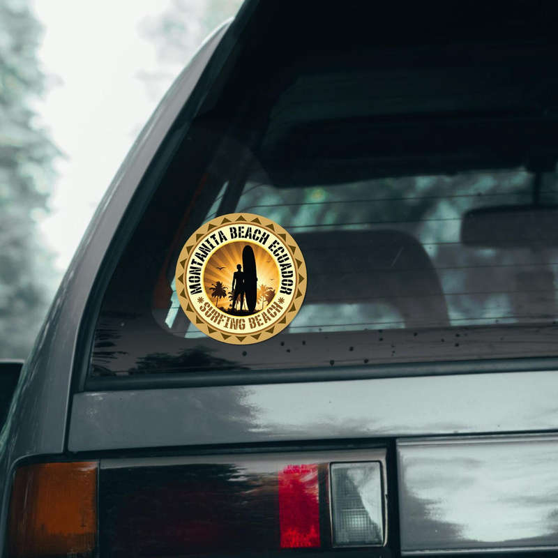 Capture the vibrant spirit of Montañita Beach with this surfing-inspired Ecuador sticker, featuring a dynamic silhouette against a sunburst background and tropical palm trees. The warm, golden tones evoke the relaxed and adventurous vibes of one of Ecuador’s most beloved surfing spots. Made from waterproof, durable materials, this decal is ideal for both indoor and outdoor applications, enhancing cars, laptops, travel gear, and more. Available in multiple sizes, it’s easy to apply and remove without leaving residue, allowing you to take a piece of Montañita’s beach culture with you wherever you go.