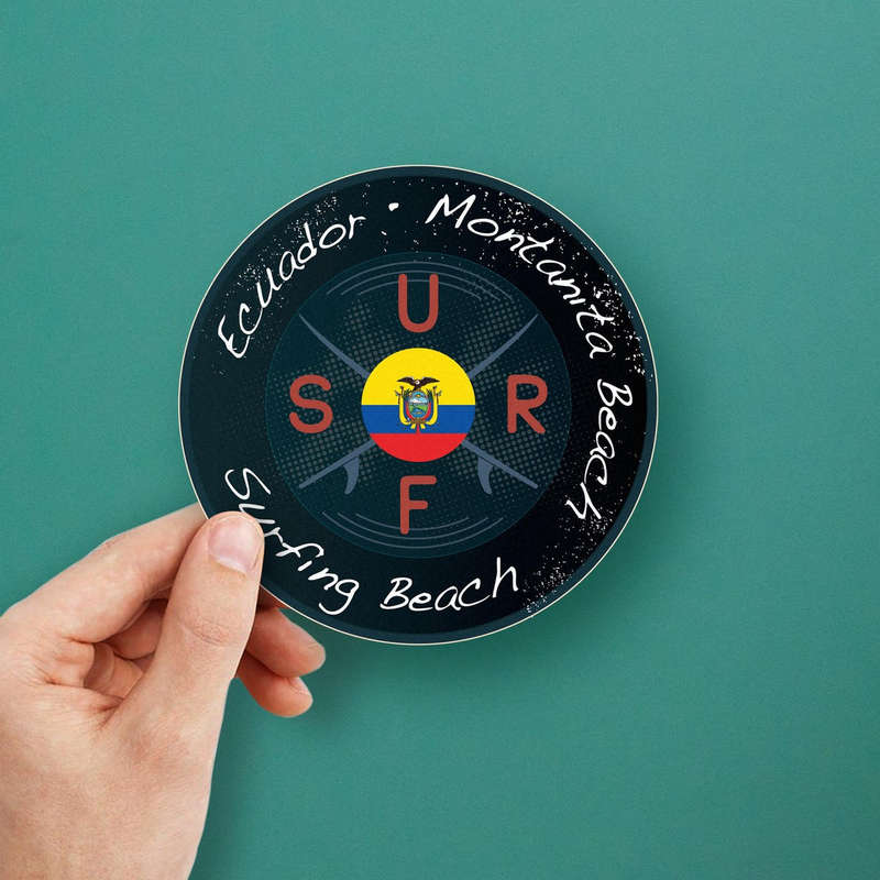 Celebrate the vibrant surf culture of Montañita Beach, Ecuador, with this bold and colorful sticker featuring crossed surfboards, the Ecuadorian flag, and a sleek, tropical design. Crafted from durable, waterproof vinyl, this decal is ideal for both indoor and outdoor use, whether you want to adorn your car, laptop, or surfboard. With its high-quality construction and multiple size options, this sticker makes a perfect keepsake or gift for surfers, travelers, and anyone who appreciates tropical adventures and Ecuadorian beaches.