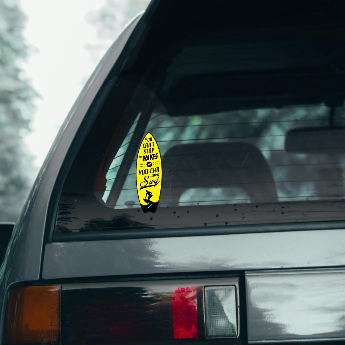 Celebrate the spirit of surfing with this motivational surfboard-shaped sticker. Featuring the inspiring quote, “You canβt stop the waves, but you can learn to surf,” itβs perfect for bringing a beachy, uplifting vibe to your car, laptop, or even your home decor. Made from durable vinyl, this waterproof sticker is built to last through various weather conditions, making it suitable for both indoor and outdoor use. Whether you’re a surfing enthusiast or simply love the ocean, this sticker is an easy way to add some positivity and adventure to your life.