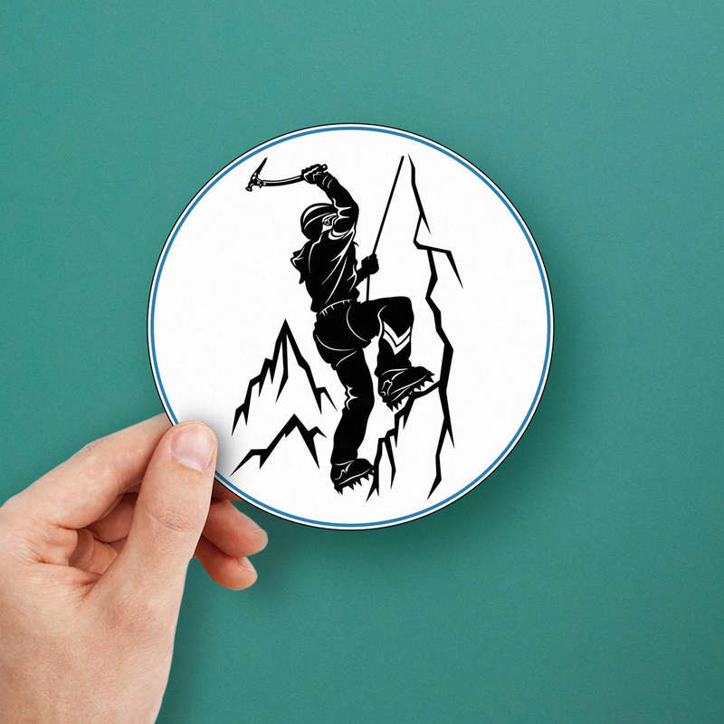 Mountain Climber Sticker 🧗 Bold Adventure Design: Featuring a striking black-and-white illustration of a climber scaling a mountain, this sticker symbolizes courage and adventure, perfect for outdoor enthusiasts. 🧗