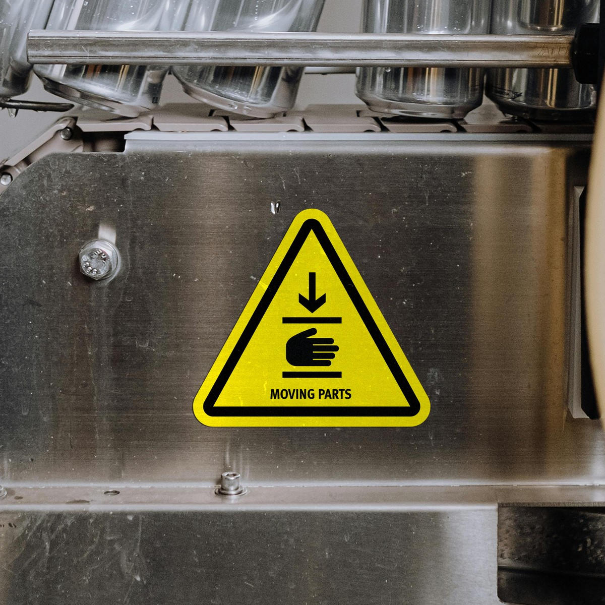 Promote workplace safety and prevent accidents with this high-visibility “Moving Parts” safety warning sign sticker. Featuring bold black text and a clear icon on a bright yellow background, this decal effectively communicates the presence of hazardous moving machinery. Made from durable, weatherproof vinyl, it’s suitable for both indoor and outdoor use in industrial areas, workshops, and on machinery. The self-adhesive backing makes it easy to apply to smooth surfaces, and it can be removed without leaving residue. Available in multiple sizes, this sticker ensures safety across various environments, helping to protect workers and visitors.
