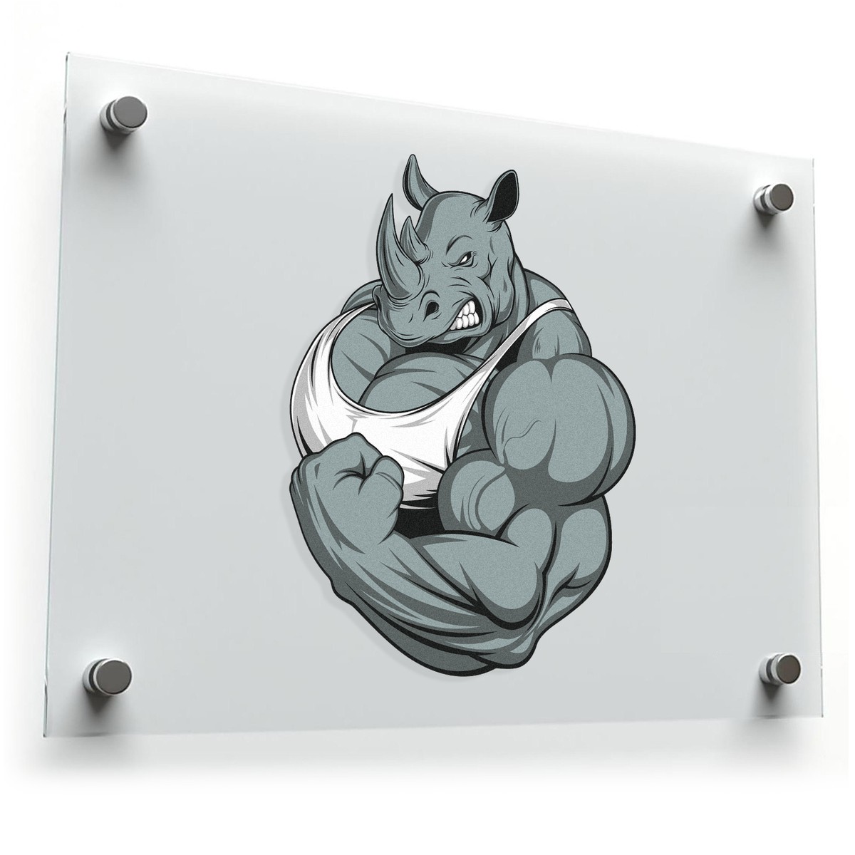 Muscle Rhino Vinyl Decal 💪 Bold Muscle Rhino Design: This powerful and fierce rhino cartoon sticker is perfect for gym enthusiasts or anyone looking to add a tough, fun vibe to their decor. 💪