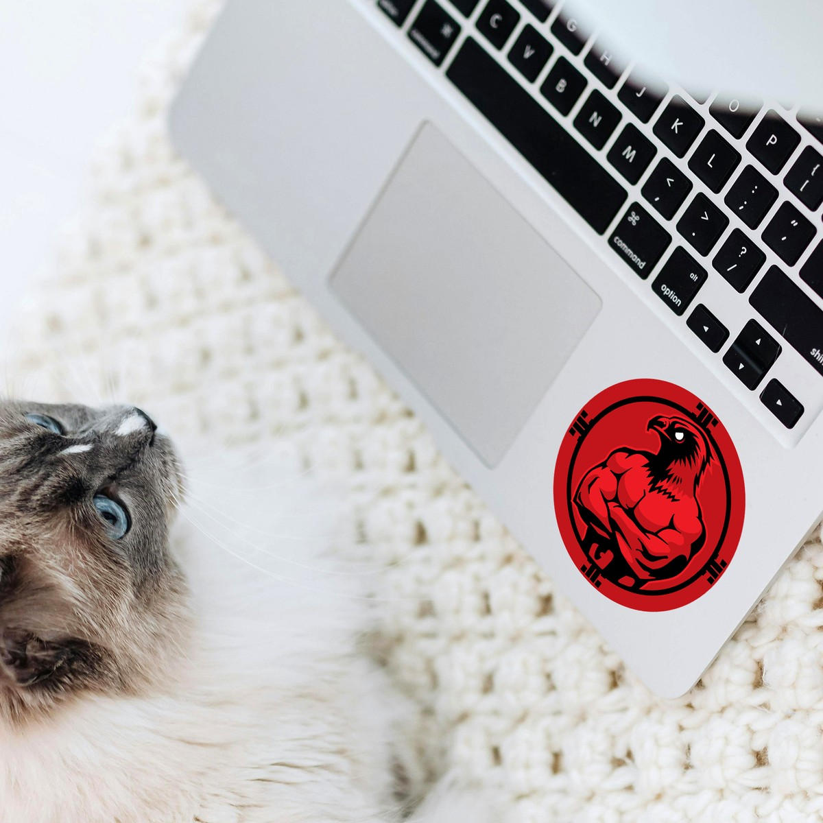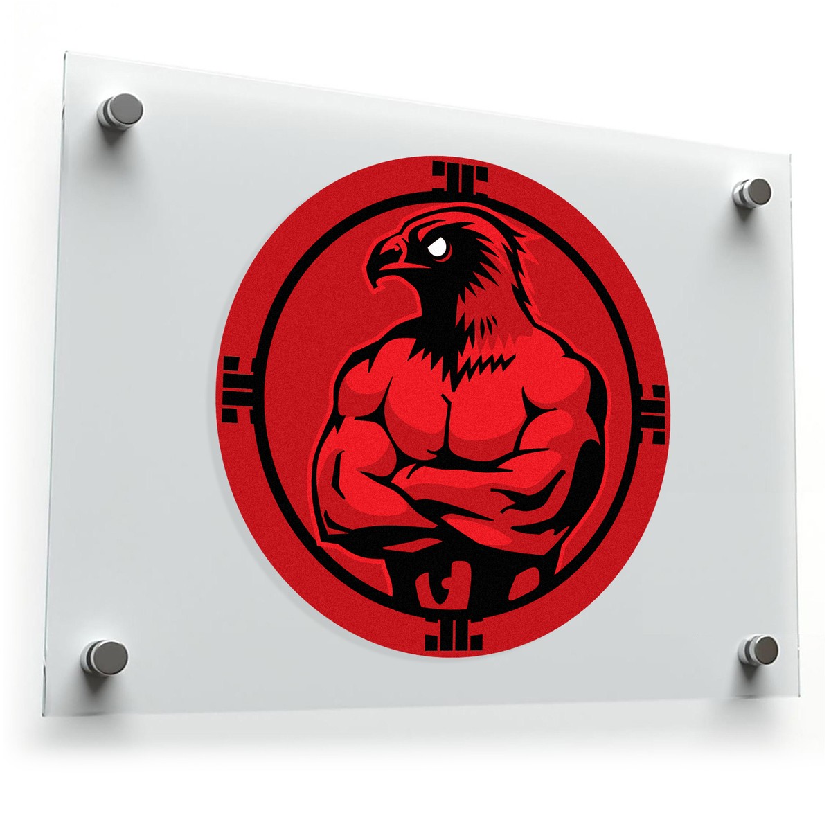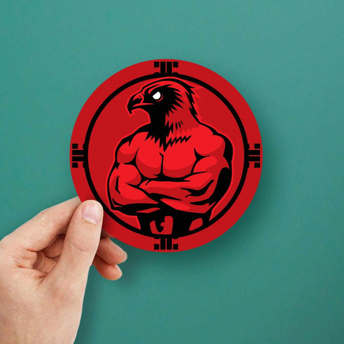 Muscular Hawk Sticker 🦅 Powerful and Eye-Catching Design: This muscular hawk sticker features a fierce hawk with a bold red and black color scheme, making it a striking and unique decal for any surface. 🦅