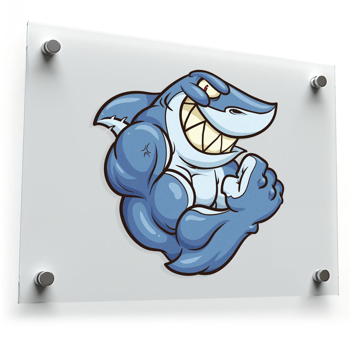 Muscular Shark Mascot Vinyl Sticker 🦈 Bold Shark Mascot: This fun and fierce muscular shark mascot sticker adds personality to your belongings, perfect for cars, laptops, water bottles, and more with its bold and playful design. 🦈