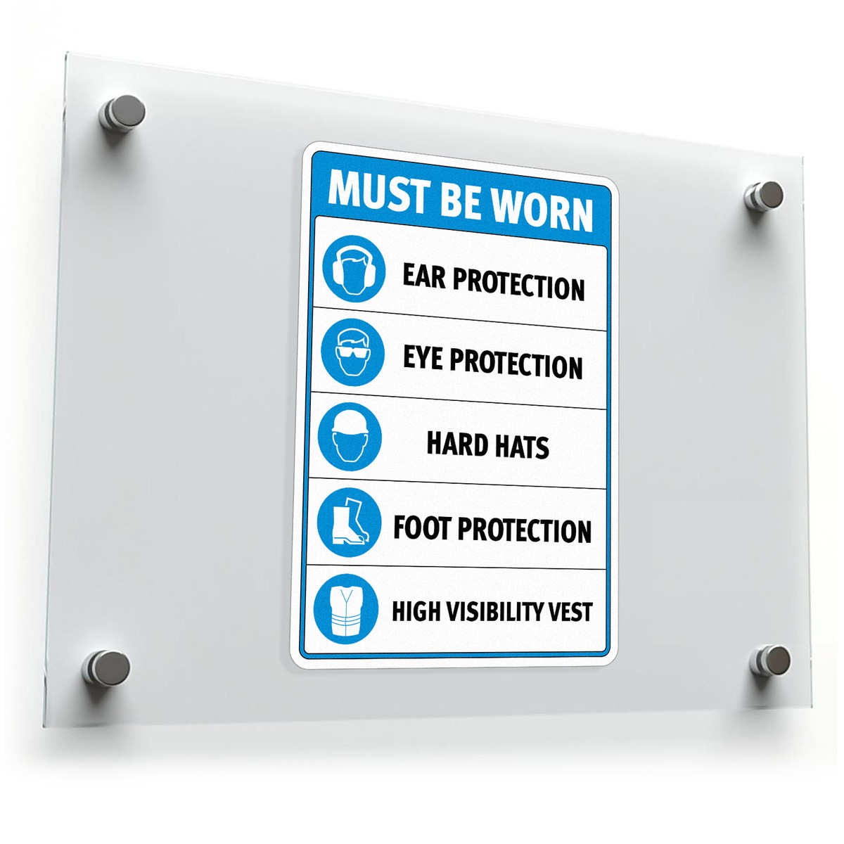 💙 Highly Visible Design: The bold blue and white design with clear graphics and text ensures all safety requirements are easily readable, promoting compliance in busy industrial environments. 💙