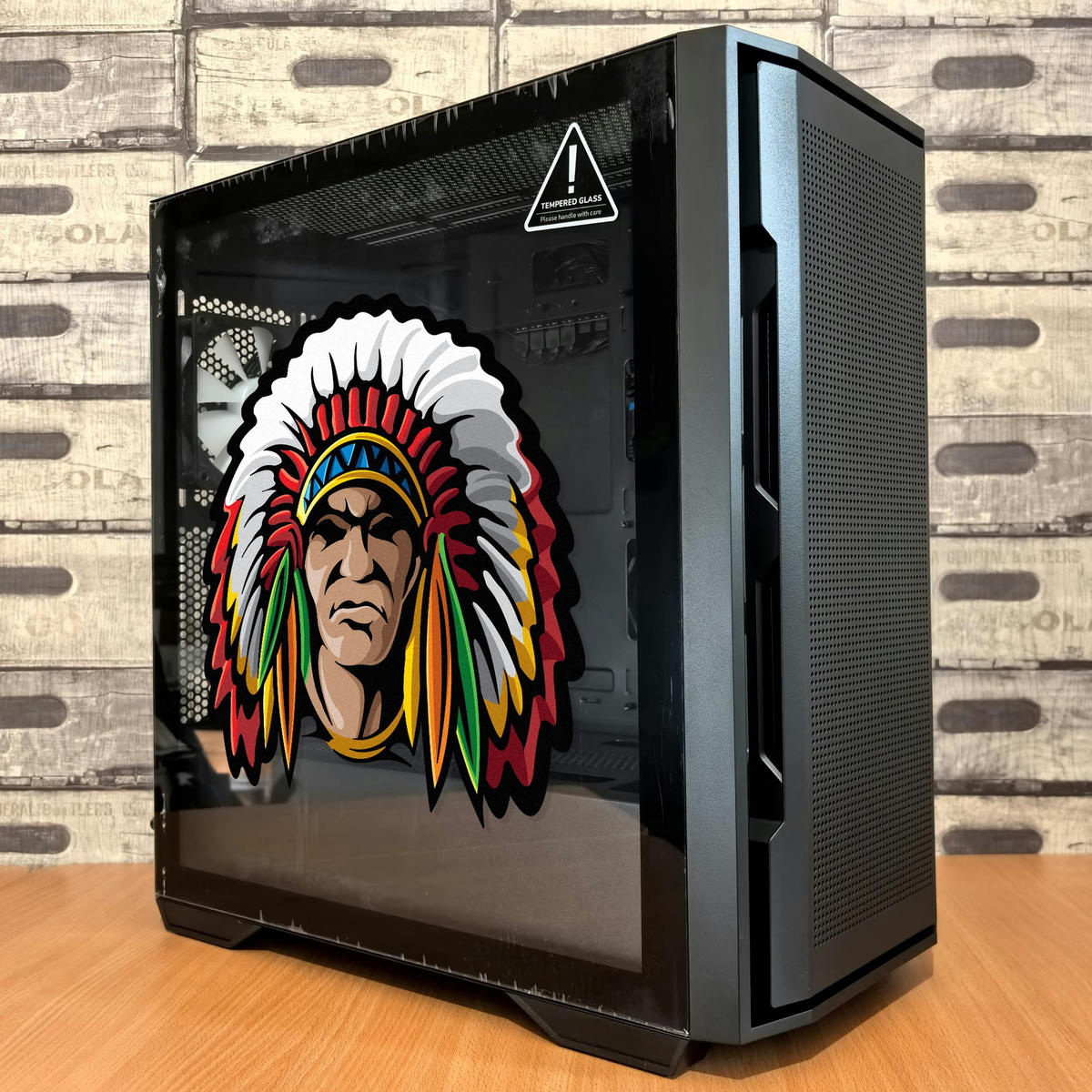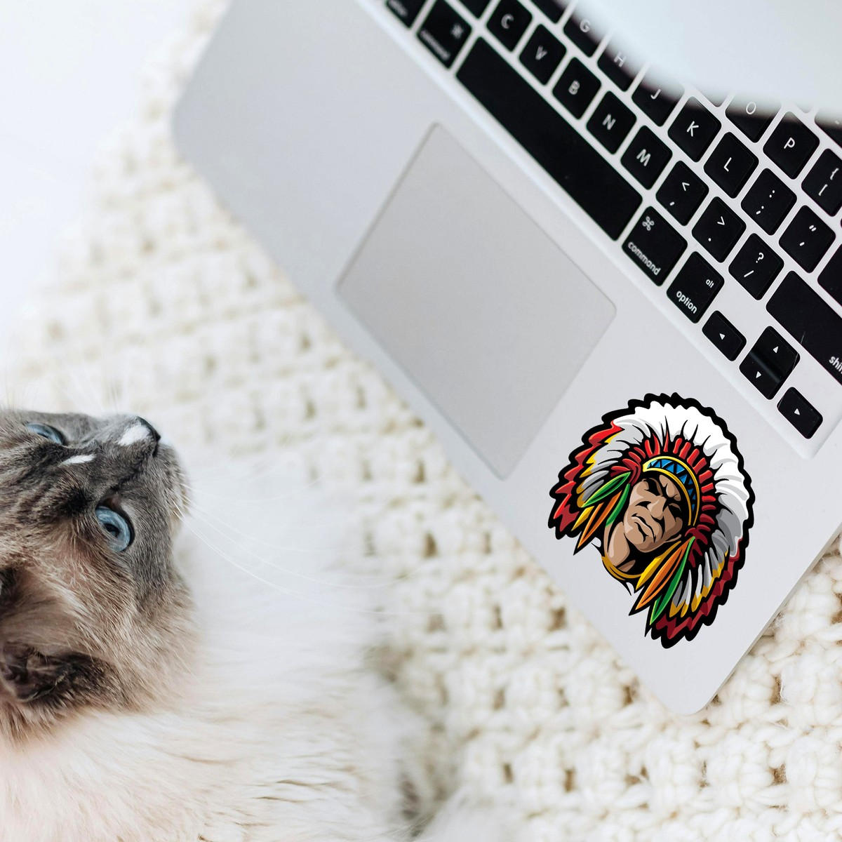 Celebrate the rich cultural heritage with this vibrant Native American chief headdress vinyl sticker. Featuring intricate feather details and a bold, colorful design, this decal adds a striking aesthetic to your personal items like cars, laptops, or water bottles. Crafted from high-quality, waterproof vinyl, it ensures long-lasting durability and can be used indoors or outdoors without fading. Available in multiple size options, this sticker is easy to apply and remove, leaving no residue behind. Add a touch of cultural elegance to your belongings with this beautifully designed feather headdress decal.