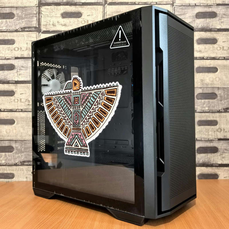 Celebrate the beauty of cultural art with this Native-inspired Thunderbird sticker, featuring a detailed tribal pattern in soft earthy tones of orange, green, and brown. This geometric decal combines tradition with modern aesthetics, making it perfect for personalizing your belongings. Crafted from durable vinyl, it resists fading and wear, ensuring lasting quality for both indoor and outdoor applications. Whether used on laptops, cars, walls, or custom projects, this versatile sticker offers an artistic and unique touch. Available in multiple sizes, it’s the ideal choice for showcasing your appreciation for cultural design.
