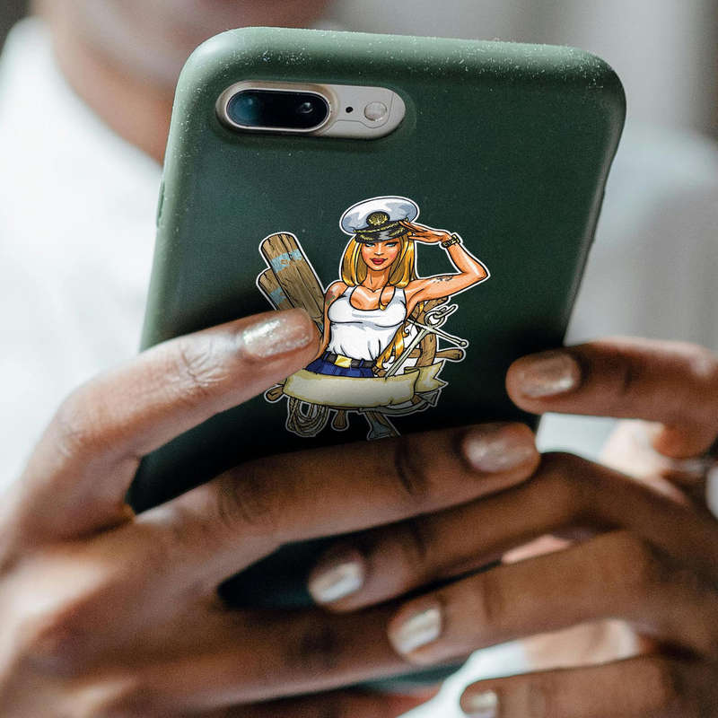 Bring a touch of vintage nautical charm to your belongings with this pin-up girl sticker, featuring a vibrant design of a sailor girl surrounded by classic maritime elements like an anchor, ropes, and paddles. Crafted with high-quality vinyl, this weatherproof and fade-resistant decal ensures long-lasting durability, whether displayed indoors or outdoors. Its easy-peel adhesive backing allows for smooth, bubble-free application and mess-free removal. Perfect for decorating laptops, cars, walls, or other surfaces, this retro-inspired sticker is a unique and stylish way to showcase your love for nautical themes. Available in multiple size options, it makes an excellent gift for art and retro enthusiasts.