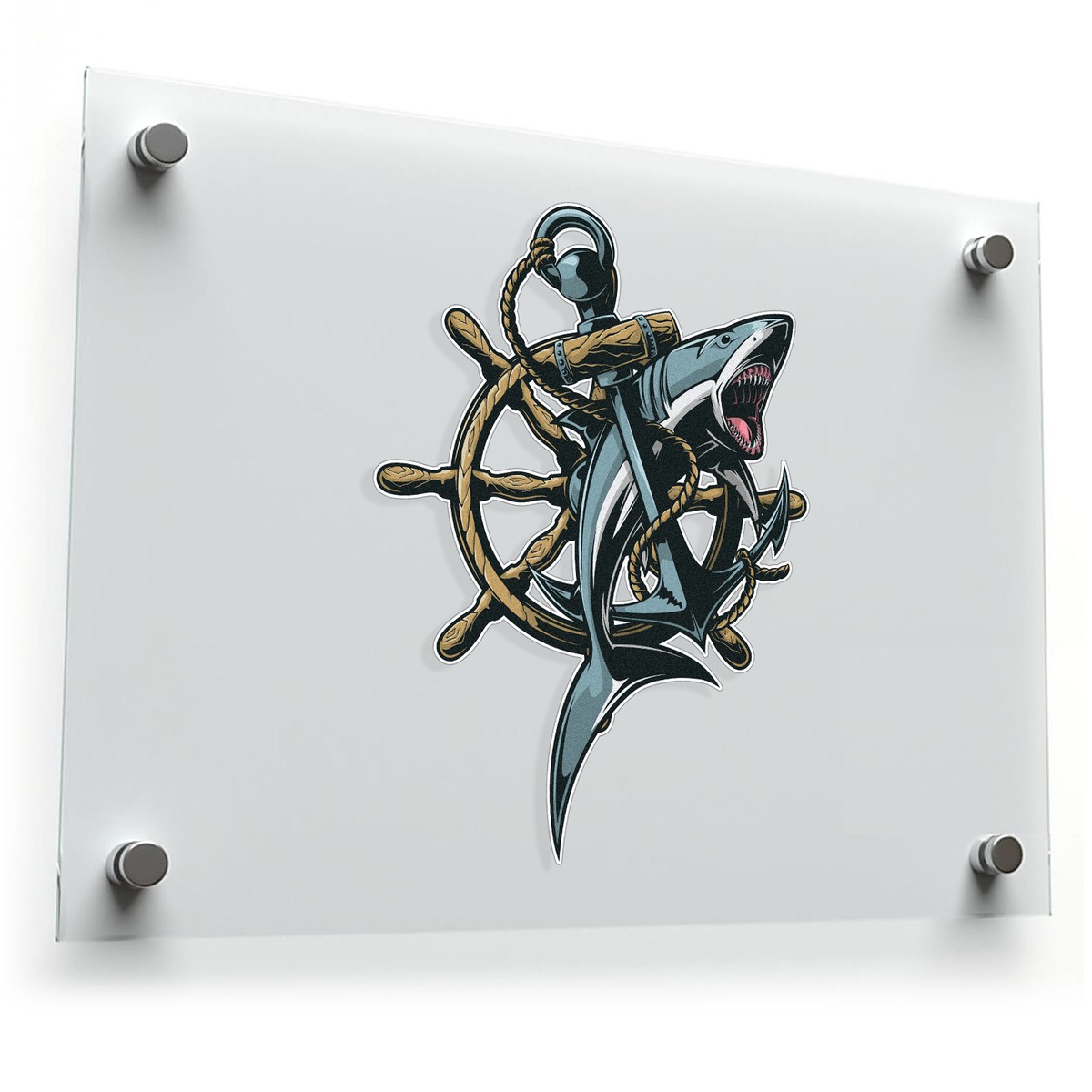 Dive into maritime adventure with this Nautical Shark Sticker. Featuring a fierce shark entwined with an anchor and ship wheel, this vinyl decal combines the boldness of ocean life with intricate nautical elements. Perfect for laptops, cars, water bottles, or home decor, its detailed design in gray, blue, and golden tones adds a striking marine aesthetic to any surface. Made from durable vinyl, the sticker is fade-resistant and weatherproof, ensuring long-lasting quality indoors and outdoors. Available in multiple size options, this nautical-themed decal is perfect for ocean enthusiasts and lovers of unique, maritime-inspired art.