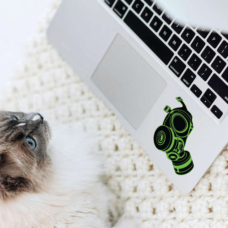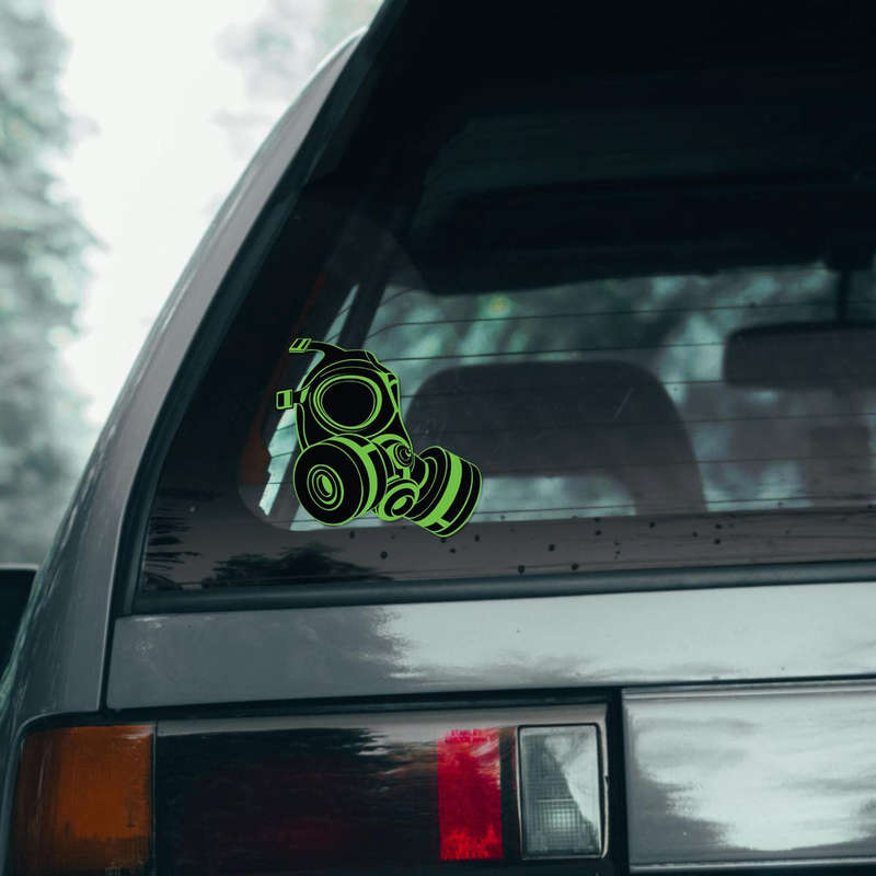 🚗 Versatile Use: Whether on your car, laptop, or water bottle, this neon green gas mask decal adds a striking visual that stands out, giving your belongings a distinctive look. 🚗