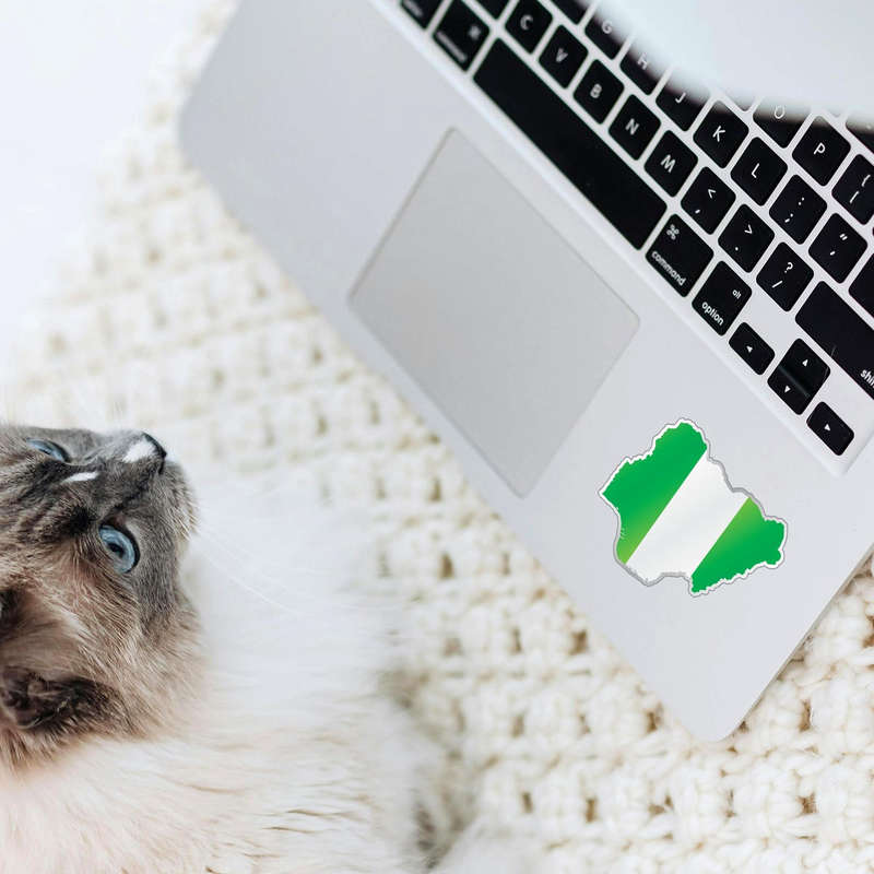 Celebrate your Nigerian pride with this Nigeria Map Flag Sticker, featuring a vibrant green and white design in the country’s iconic shape. Made from durable, weatherproof vinyl, this decal is perfect for personalizing cars, laptops, water bottles, and travel gear. Its bold colors and unique map outline make it an eye-catching addition to your belongings, whether for everyday use or special occasions. The easy peel-and-stick application ensures a smooth finish and leaves no residue upon removal. Ideal for both indoor and outdoor use, this patriotic sticker is available in multiple sizes to suit your style.