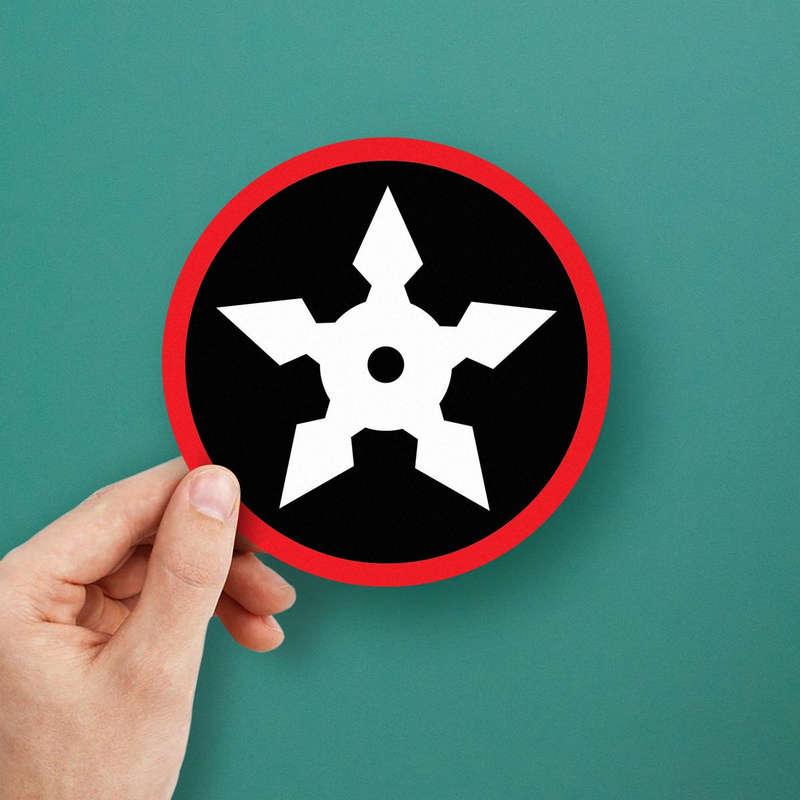 Unleash your inner ninja with this bold ninja shuriken vinyl sticker. Featuring a sharp black and white throwing star icon surrounded by a vivid red border, this eye-catching decal is perfect for personalizing your space. Whether for a laptop, notebook, wall, or martial arts studio, this premium vinyl sticker offers long-lasting durability with easy, residue-free removal. Available in multiple sizes, it adapts to your decor needs, serving as a subtle accent or a bold centerpiece. Add a dynamic and action-packed vibe to your belongings with this striking martial arts-inspired decal.