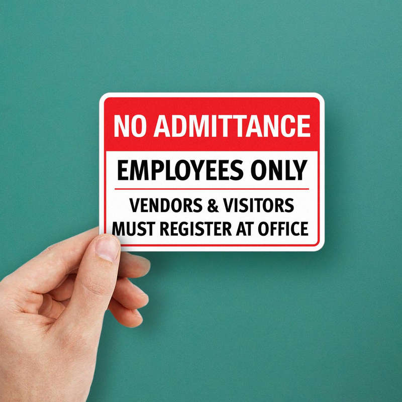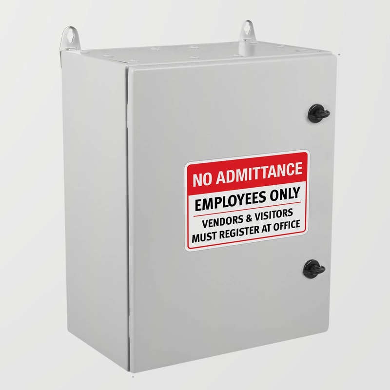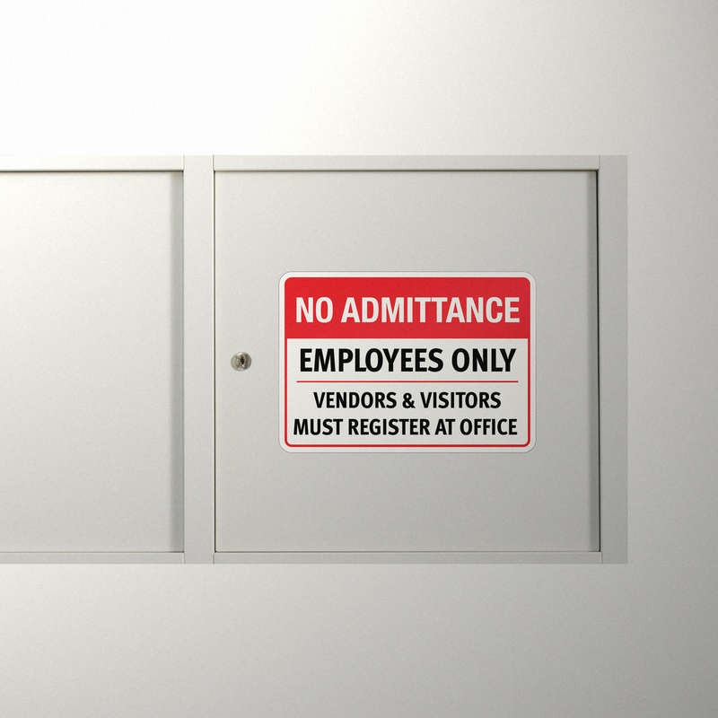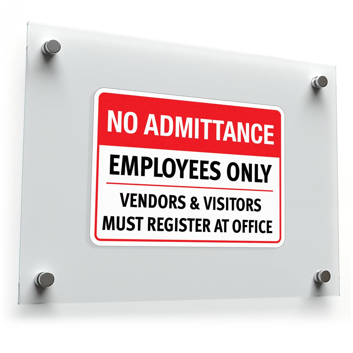 Enhance workplace safety and communication with this “No Admittance Employees Only” sticker. Designed to mark restricted areas, this bold vinyl decal is perfect for offices, warehouses, and other locations where access is limited. Its durable, weatherproof construction makes it ideal for both indoor and outdoor use. Easy to apply and remove without residue, this sticker is available in multiple sizes, ensuring clear and effective communication to visitors, vendors, and employees. Promote compliance with workplace safety protocols using this high-quality warning decal.