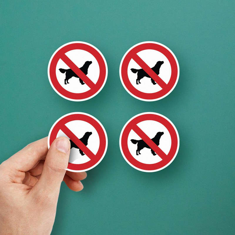 No Dogs Allowed Vinyl Sticker Set 🚫 Clear Prohibition Symbol: Each sticker features a bold red circle with a black dog silhouette crossed out, instantly conveying “No Dogs Allowed” for maximum clarity and visibility. 🚫