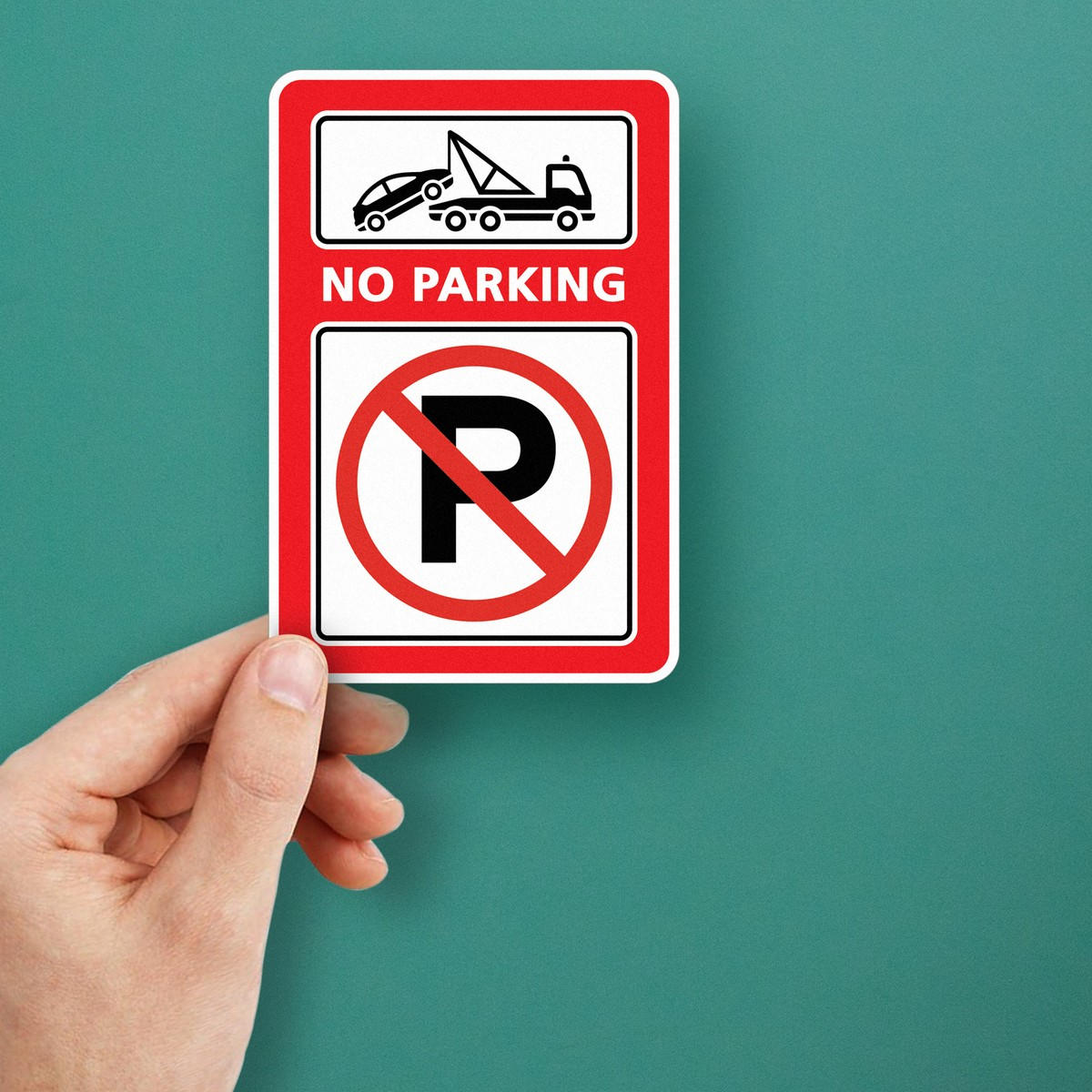 “No Parking” Towing Warning Sign Decal 🚫 Clear No Parking Warning: This “No Parking” decal ensures that your message is seen loud and clear, warning drivers of towing enforcement in restricted areas. 🚫