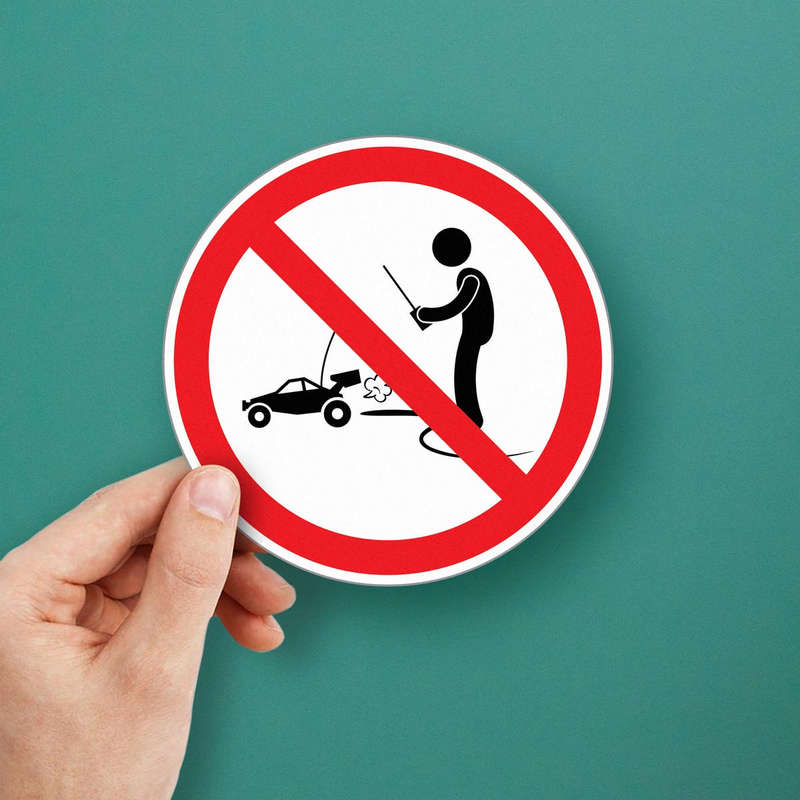 📌 Perfect for Safety Zones: This decal is an excellent addition for parks, private properties, or areas where RC car use is restricted, helping to maintain a controlled and safe environment. 📌