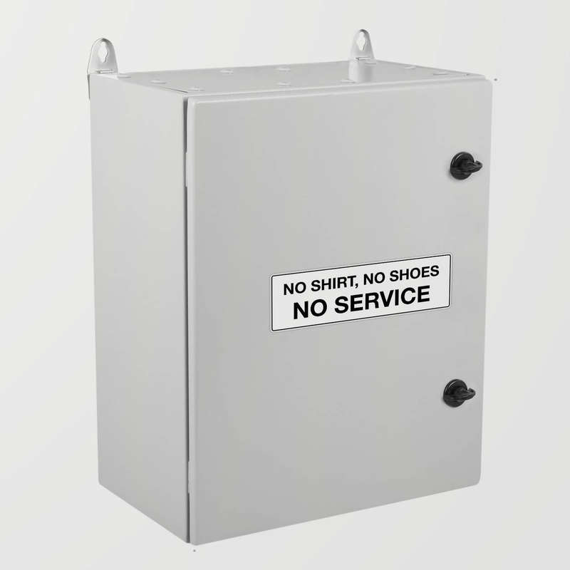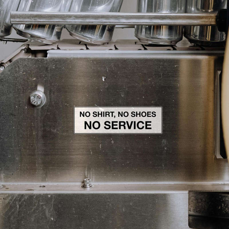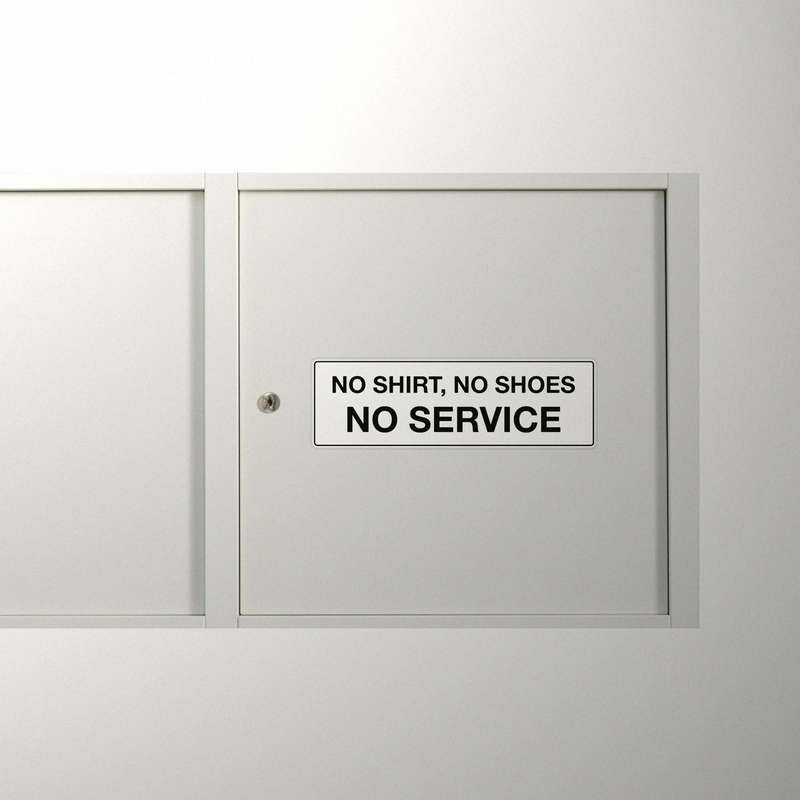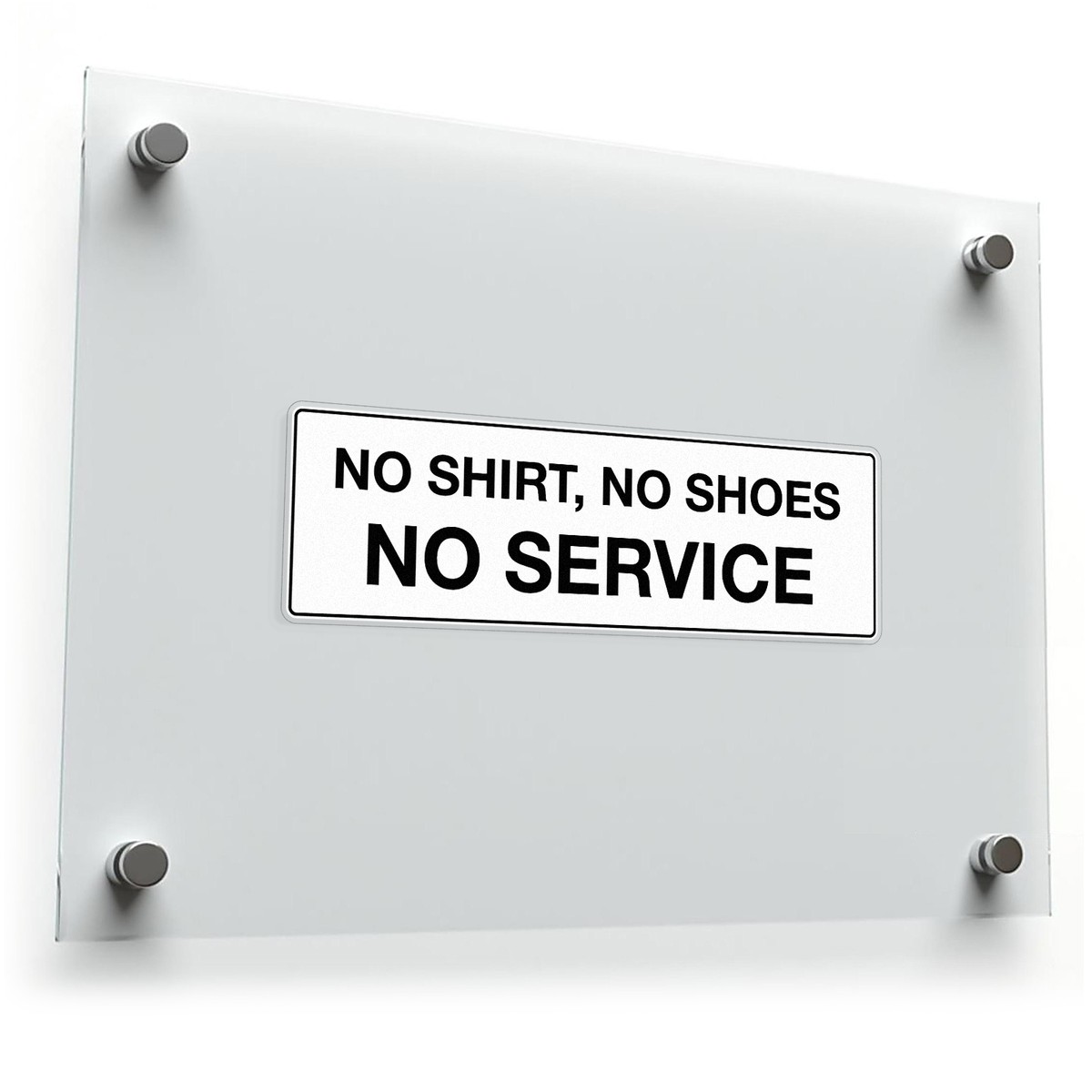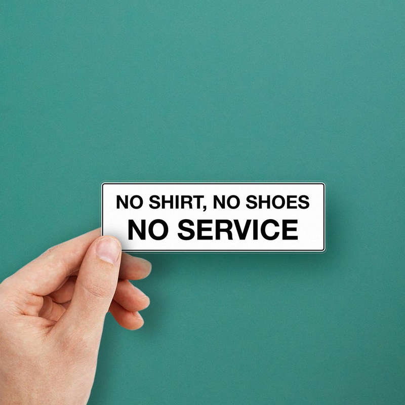 Reinforce entry policies with this “No Shirt, No Shoes, No Service” sign sticker, perfect for maintaining a professional and hygienic atmosphere in your business. With bold black text on a crisp white background, this decal is highly visible and ensures customers understand entry requirements before entering. Made from durable, weather-resistant vinyl, it’s suitable for both indoor and outdoor use, ideal for shops, restaurants, and any establishment with entry policies. Available in multiple sizes, this sticker is easy to apply on doors or windows, providing a lasting reminder to promote customer compliance with your service standards.