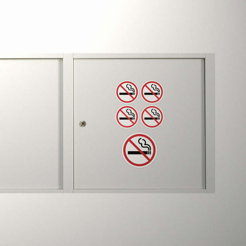 Promote a smoke-free environment with this set of five no smoking sign decals. Featuring a bold red and white design, these decals make it clear that smoking is prohibited, making them ideal for businesses, offices, or any public area. Made from durable vinyl, they are suitable for both indoor and outdoor use, resisting weather and wear over time. The strong adhesive backing ensures easy application on a variety of surfaces, while the residue-free removal allows for flexibility in updating your space. Available in multiple sizes, these decals are perfect for ensuring your smoke-free message is visible wherever needed.