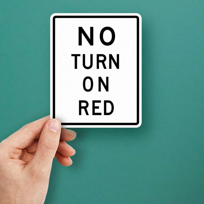 Enhance road safety and compliance with this “No Turn on Red” traffic safety sticker. Designed with bold black text on a sharp white background, this decal ensures visibility and grabs attention at a glance. Its weatherproof and durable construction resists fading, peeling, and cracking, making it reliable for long-term outdoor use. Easy to apply, the adhesive backing securely sticks to surfaces like metal, glass, and plastic. Available in multiple size options, this versatile sticker is perfect for vehicles, intersections, and worksites, promoting awareness and reducing traffic violations.