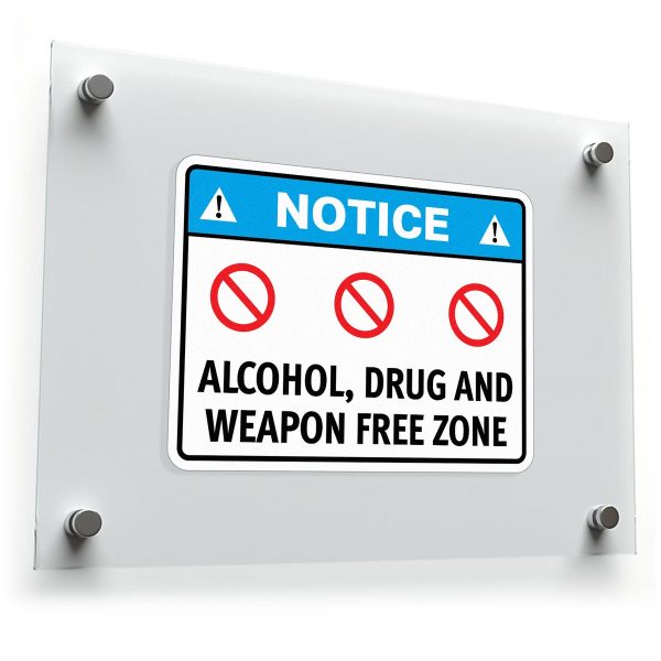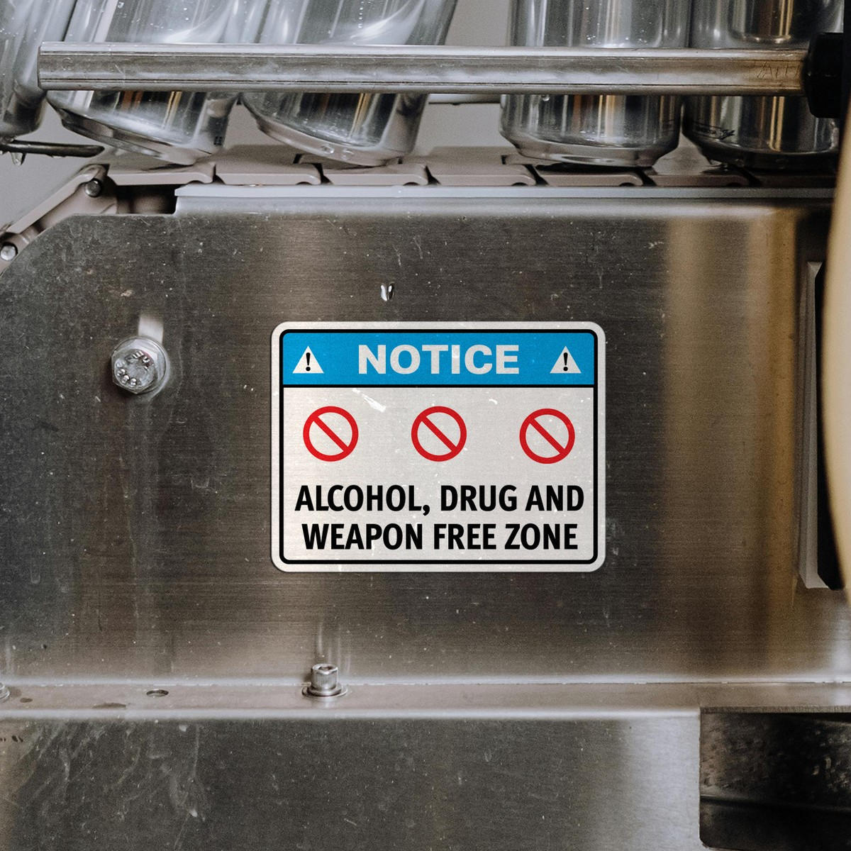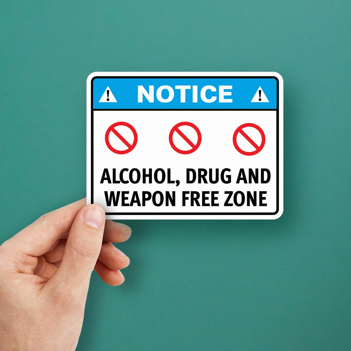 Maintain a safe and compliant environment with this durable vinyl “Alcohol, Drug, and Weapon Free Zone” safety sticker. Designed for both indoor and outdoor use, this decal is perfect for workplaces, schools, and public spaces. Its professional design ensures clear visibility, helping to enforce your safety protocols. With easy application and removal, this sticker can be used temporarily or permanently without leaving any residue. Available in multiple size options, this high-quality decal is a practical solution for promoting a drug-free and weapon-free zone.