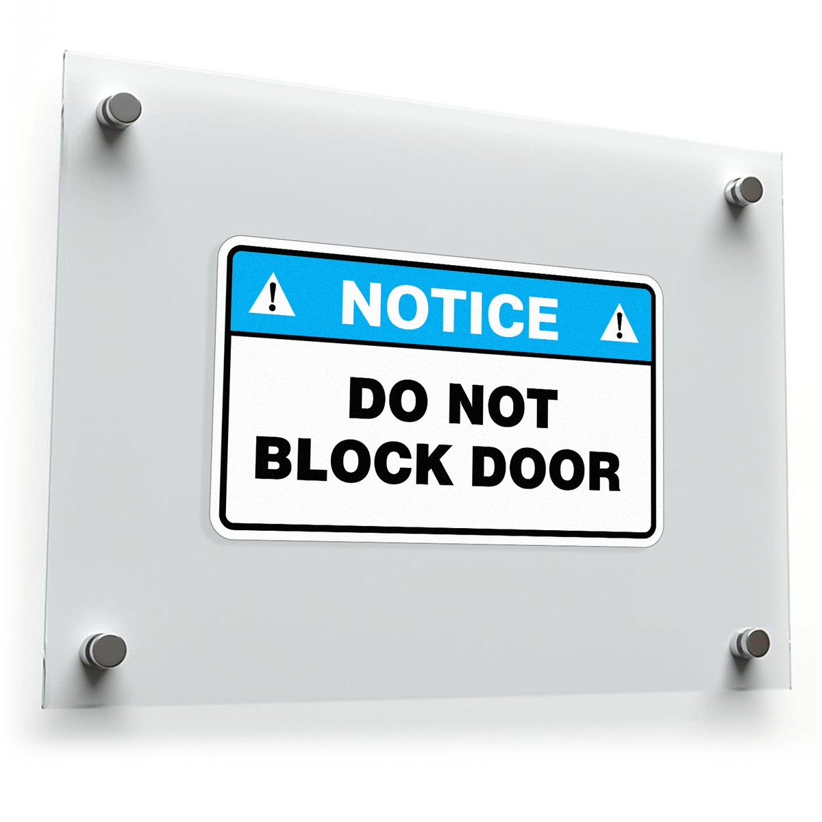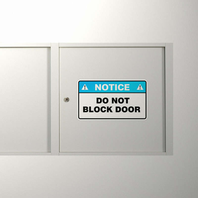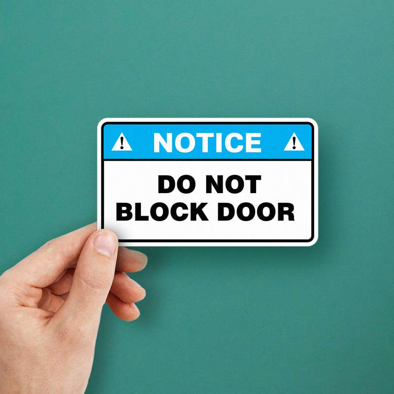 Ensure clear access and promote safety with this “Notice Do Not Block Door” sticker, designed to remind personnel and visitors to keep doorways unobstructed. With a high-visibility blue and white design, this decal is easy to spot and effectively communicates the importance of unblocked doors in facilities, offices, and commercial spaces. Constructed from durable vinyl, it withstands frequent use and adheres well to doors without leaving residue. Available in multiple sizes, this sticker is quick to apply and supports safe and organized access in high-traffic environments.