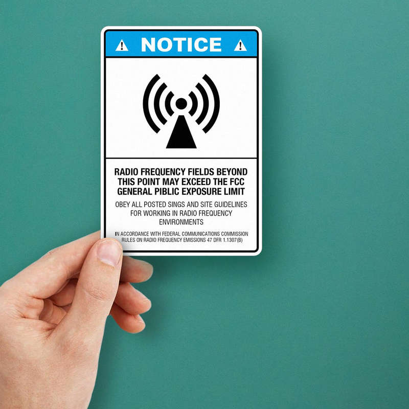 Notice RF Fields Warning Sticker – FCC Compliance Safety
