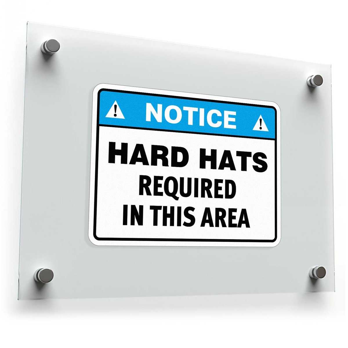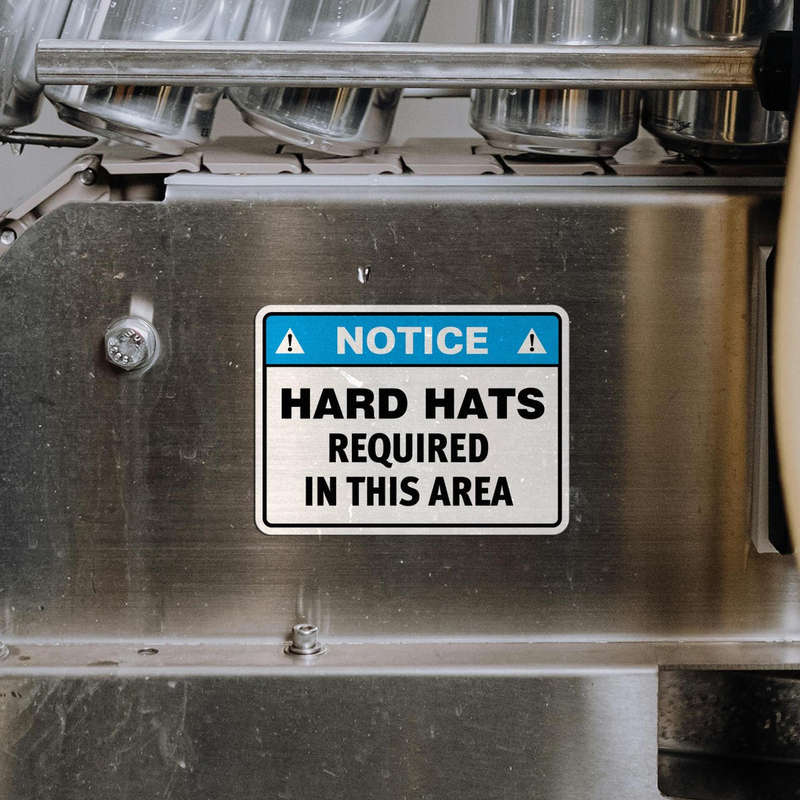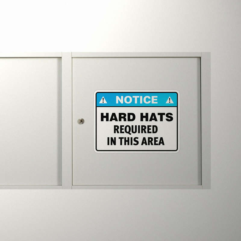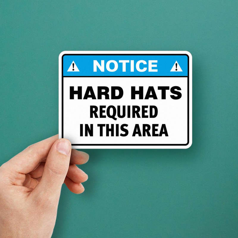 Enhance workplace safety with this Notice Sign Sticker displaying the critical message “Hard Hats Required in This Area.” Designed for construction sites, warehouses, and industrial zones, this decal ensures safety compliance and clear communication. The bright blue header, bold black text, and white background provide high visibility in any environment. Made from durable, fade-resistant vinyl, it withstands tough conditions, ensuring long-lasting effectiveness. Available in multiple sizes, this safety sticker is easy to apply and remove, making it a practical addition to any workplace focused on safety and professionalism.