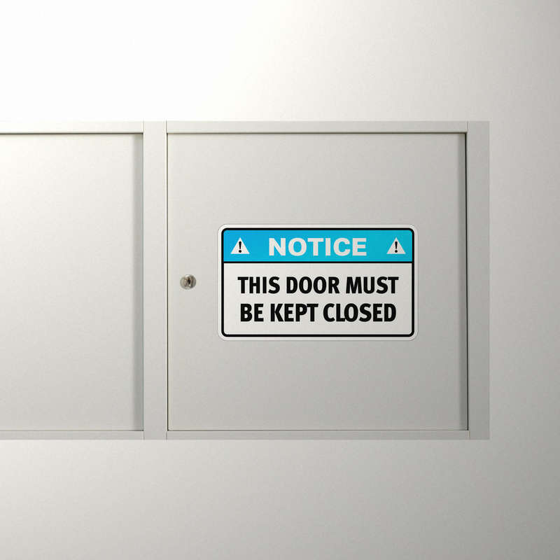 Enhance workplace compliance and safety with this “Notice: This Door Must Be Kept Closed” sticker. Designed with bold blue and black text on a white background for maximum visibility, this durable and weatherproof decal ensures that essential doors stay closed, supporting compliance in various settings. Made for easy application, it adheres firmly to surfaces like metal, glass, and wood, maintaining visibility and adhesion over time. Ideal for industrial, office, and warehouse environments, this sticker serves as a reliable reminder to reinforce safety protocols. Available in multiple size options, it’s a practical addition to any safety-conscious facility.
