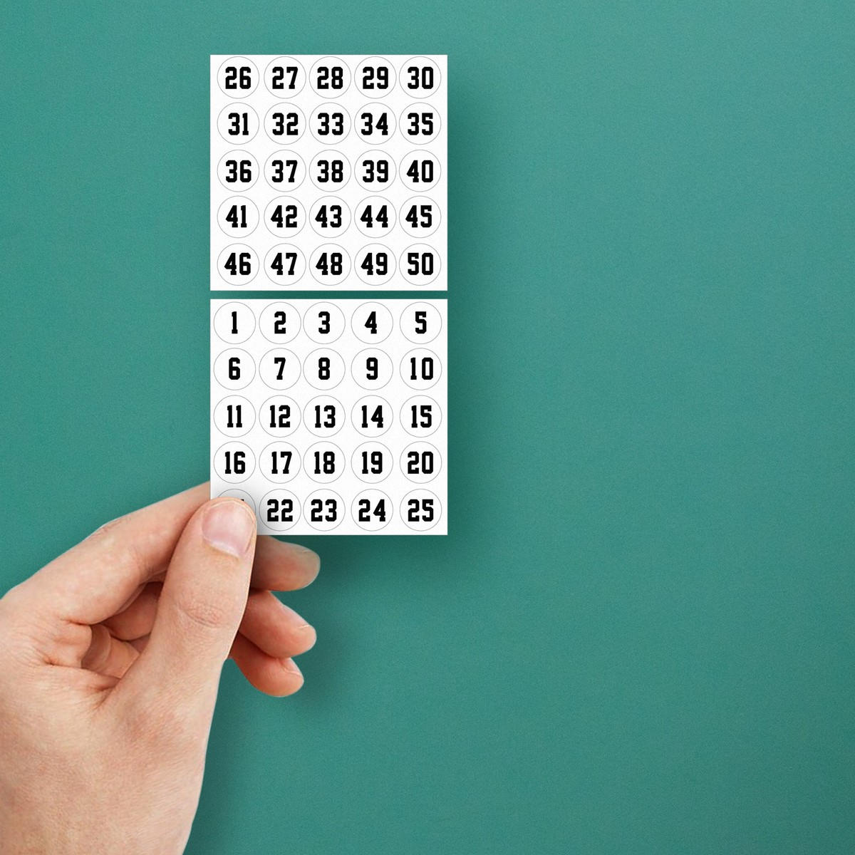Simplify your organization and inventory management with this set of numbered round stickers, ranging from 1 to 50. Made from durable vinyl, these high-visibility stickers are perfect for labeling boxes, shelves, and storage containers in both home and professional settings. Their easy-to-apply design ensures they stick securely to any smooth surface and can be removed without residue. Whether you’re organizing an office, setting up storage, or managing inventory, these stickers provide a convenient solution to keep everything in order. Available in multiple size options to fit your needs.