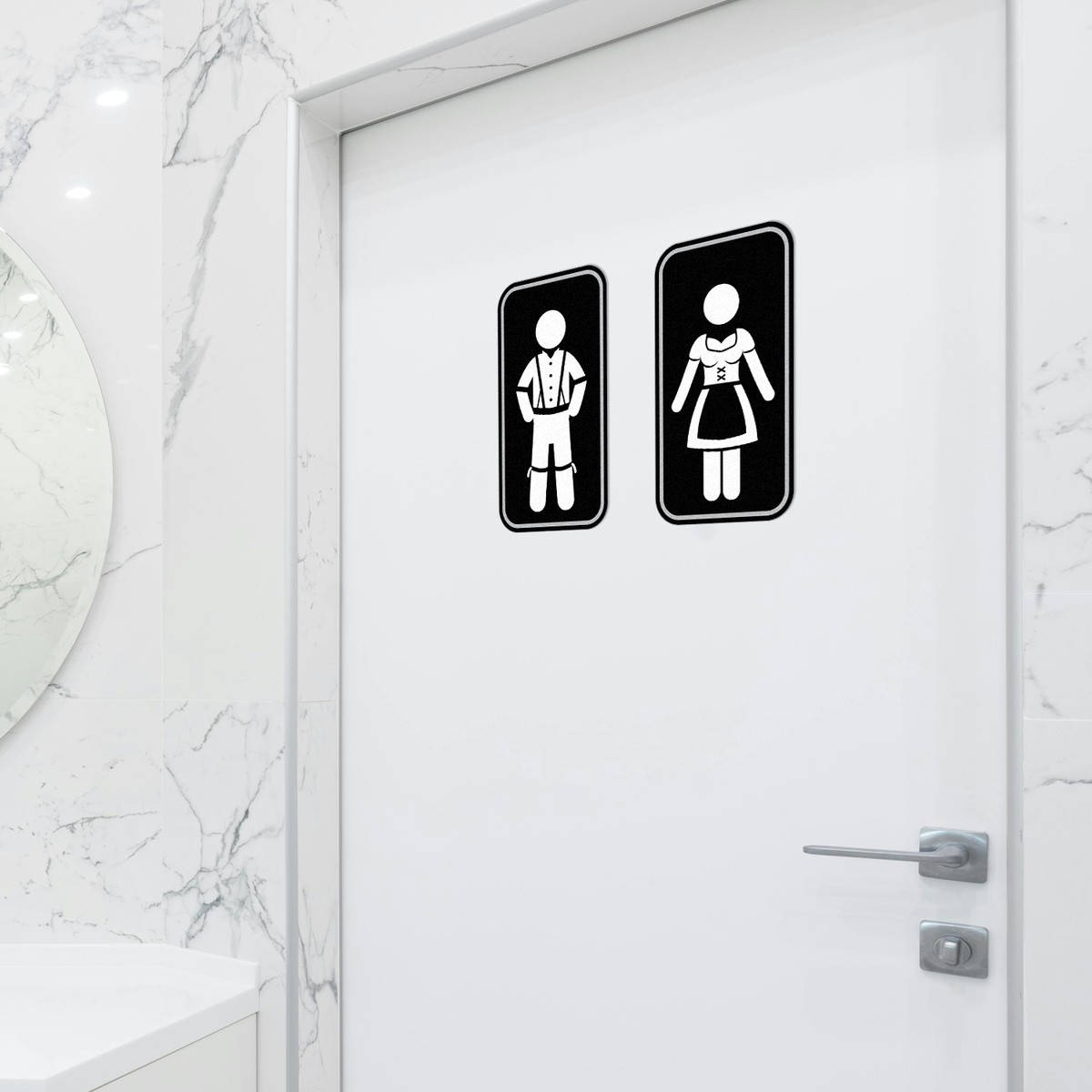 🌟 Versatile Use: These fun restroom signs are ideal for bars, restaurants, and homes, bringing a playful Bavarian theme to any space that needs restroom identification. 🌟