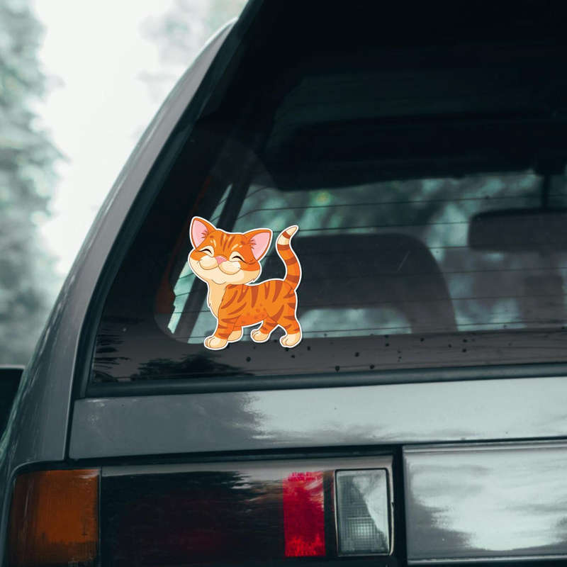 Add a delightful touch of personality to your everyday items with this adorable orange tabby cat sticker. The cheerful design, featuring a smiling feline with vibrant orange and cream tones, radiates joy and charm. Made from high-quality vinyl, this decal is durable and resistant to fading, making it suitable for both indoor and outdoor use. Whether you’re looking to decorate your laptop, water bottle, scrapbook, or even your car window, this sticker is versatile and easy to apply. Available in multiple size options, it’s the perfect gift for cat lovers or a whimsical addition to your own collection. Bring a smile to your day with this charming cat-themed decal!