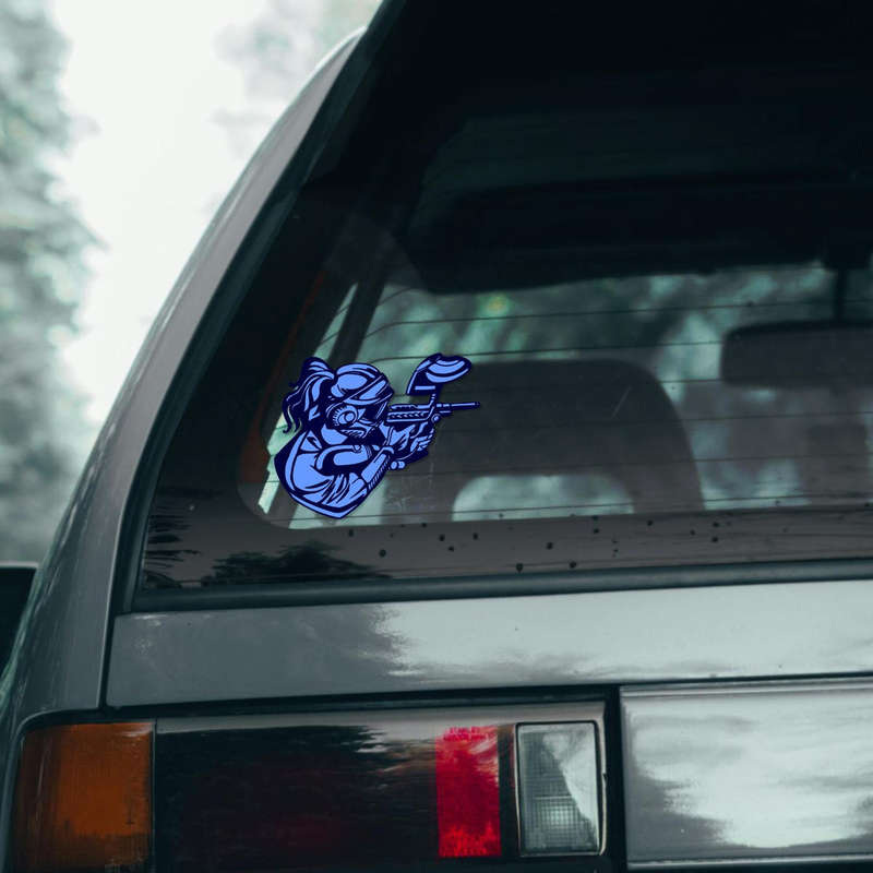 Show off your love for paintball with this bold and dynamic sticker featuring a fierce female player in action. Rendered in a striking blue design, this decal embodies the spirit of competition and precision, making it a must-have for paintball enthusiasts. Crafted from premium vinyl, it’s built to withstand outdoor elements without fading or peeling. Whether you’re customizing your helmet, car, or paintball gear, this peel-and-stick decal is easy to apply and remove, leaving no residue. Available in multiple sizes, it’s a perfect way to express your passion and personalize your accessories with style.