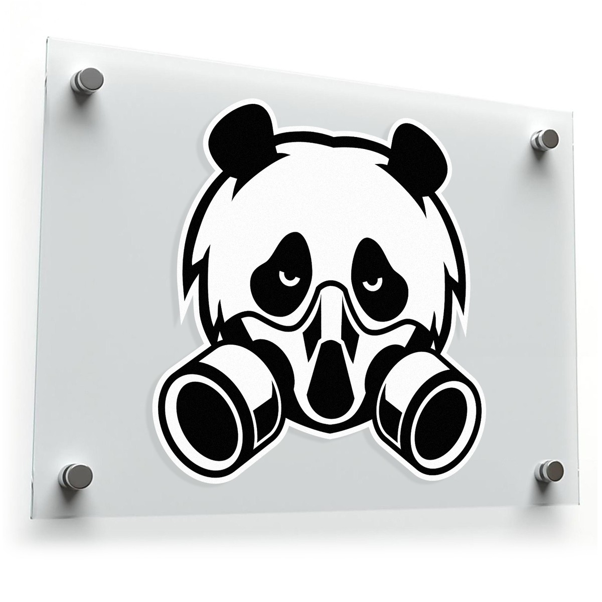 Add a unique, edgy twist to your accessories with this bold Panda with Gas Mask vinyl sticker. Crafted from high-quality vinyl, this black-and-white decal is waterproof and weatherproof, perfect for both indoor and outdoor use. Whether on a car, laptop, or water bottle, the striking design ensures your gear stands out. Easy to apply and remove without residue, this durable sticker makes a great addition to your collection or a fun gift for fans of unique, graphic art.