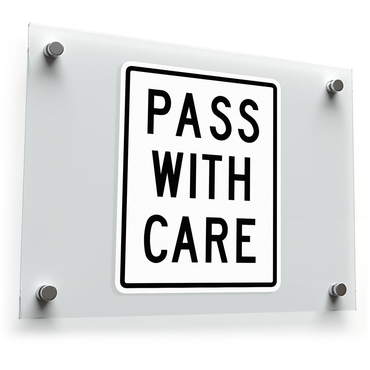 Promote safety and clarity with this “Pass With Care” vinyl sticker, designed with bold black text on a white background for high visibility. Crafted from durable, waterproof vinyl, this decal resists fading and peeling, making it suitable for outdoor use on vehicles, traffic signs, or industrial equipment. Easy to apply with its peel-and-stick design, it adheres securely to clean surfaces and removes without leaving residue. Available in multiple sizes, this safety sign is a reliable and practical solution for work zones, road safety, or any situation where clear communication is essential.