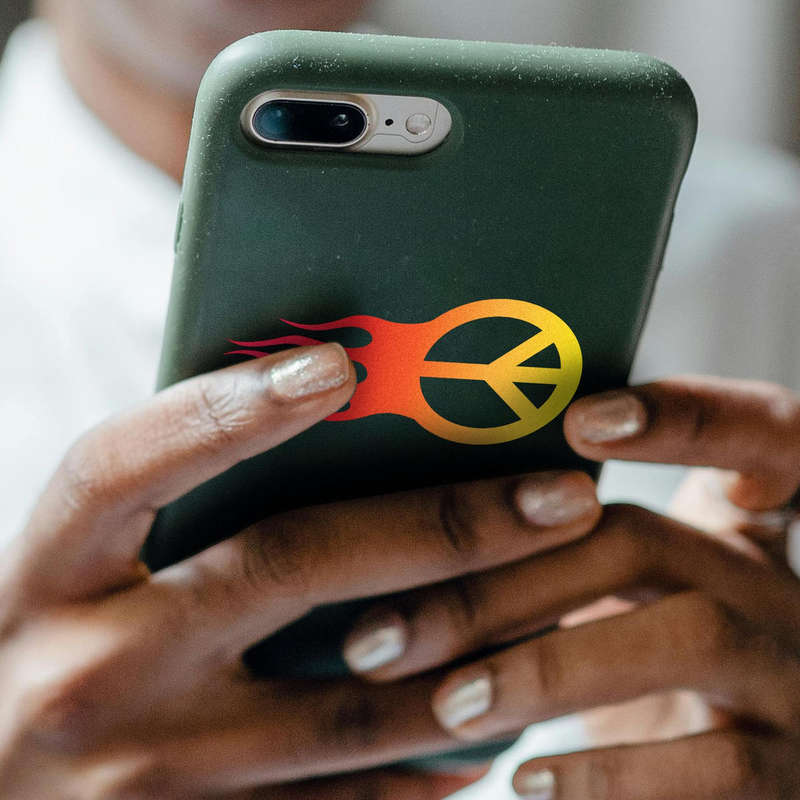 Express your passion for peace and individuality with this peace sign flame sticker, featuring a stunning gradient from red to yellow. The unique design combines the timeless peace symbol with dynamic flames, making it a vibrant addition to cars, laptops, and more. Crafted from high-quality vinyl, this decal is durable and weather-resistant, suitable for both indoor and outdoor use. It’s easy to apply and remove without leaving any sticky residue. Available in multiple sizes, this sticker is ideal for anyone wanting to make a bold yet harmonious statement with a retro twist.