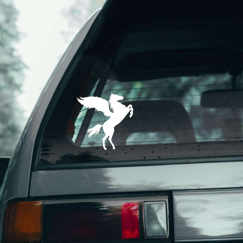 Celebrate the grace and beauty of mythology with this Pegasus silhouette vinyl decal. Featuring a sleek black design of the majestic winged horse, this sticker is perfect for enhancing cars, laptops, or walls with an elegant and striking aesthetic. Crafted from durable, weatherproof vinyl, it guarantees long-lasting quality for both indoor and outdoor applications. Easy to apply and remove without residue, it offers a hassle-free way to personalize your decor or projects. Available in multiple size options, this decal is a perfect choice for fantasy enthusiasts or anyone seeking a bold and artistic statement piece.
