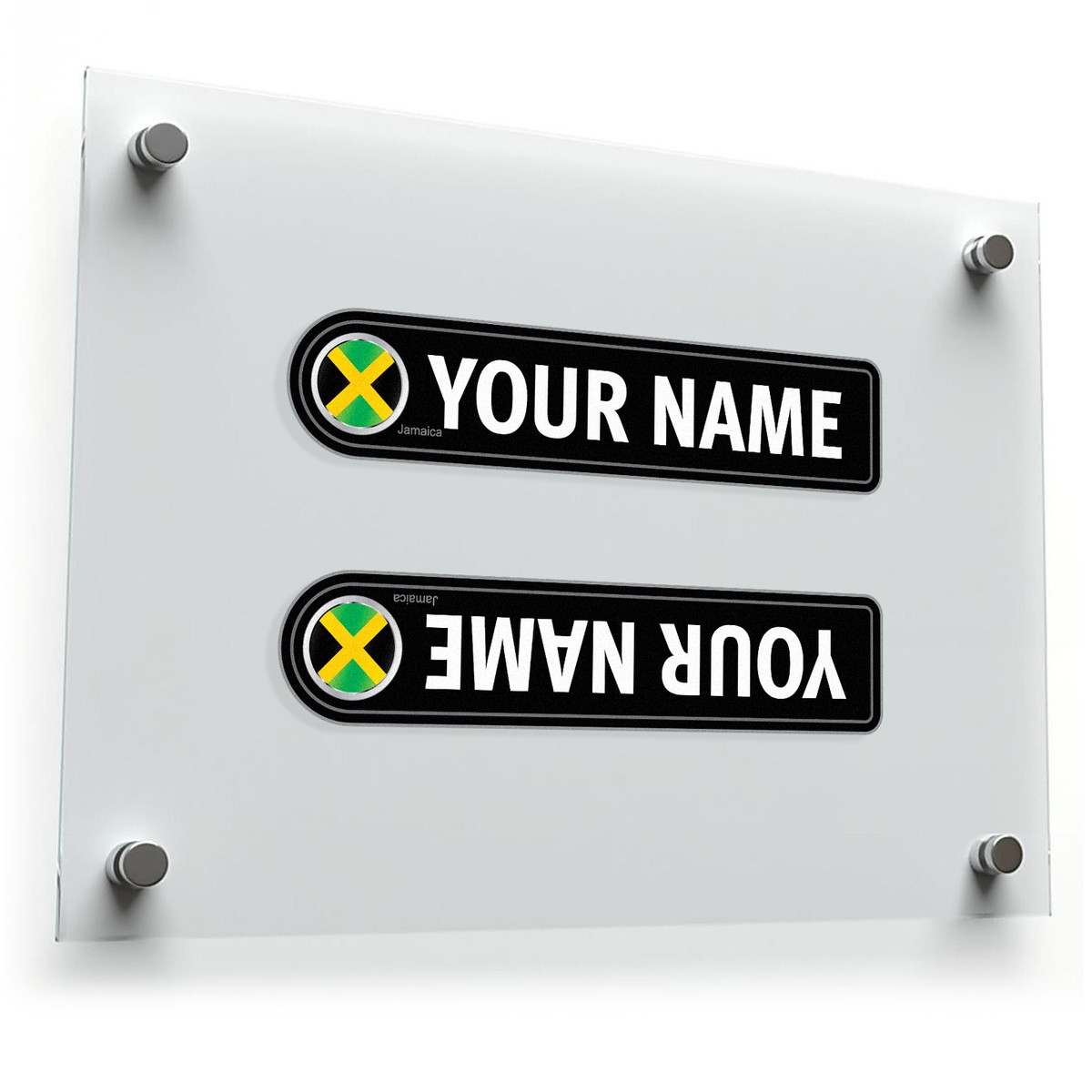 Celebrate your roots with this personalized Jamaica flag name sticker. Featuring a sleek black and white design complemented by a vibrant green, yellow, and black Jamaican flag icon, this vinyl decal allows you to showcase your name with style and pride. Perfect for cars, laptops, walls, or doors, its durable and weatherproof construction ensures long-lasting quality indoors or outdoors. Easy to apply and residue-free when removed, this sticker is a convenient option for redecorating or gifting. Available in multiple sizes, it’s an excellent way to express your individuality and heritage.