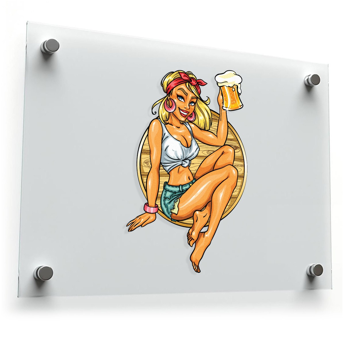Bring a splash of retro fun to your personal space with this vibrant pin-up girl holding a beer sticker. Perfect for bars, man caves, fridges, or cars, this vintage-inspired vinyl decal adds a playful and nostalgic touch wherever itโs placed. Made from high-quality waterproof vinyl, this sticker is durable and built to last both indoors and outdoors. Available in multiple size options, itโs easy to apply and remove without leaving any residue behind. Whether youโre decorating your bar or gifting it to a beer enthusiast, this pin-up girl sticker is the perfect addition to your collection.